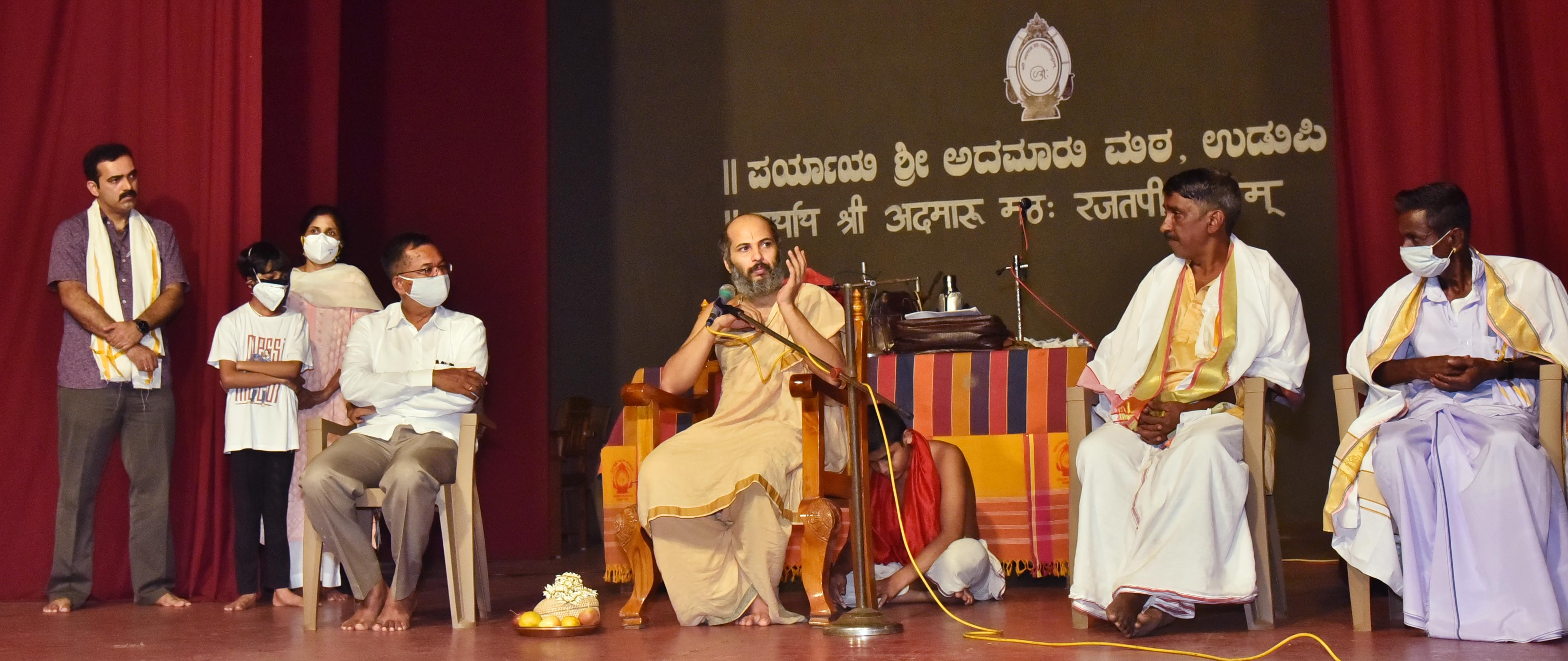 ಕಟೀಲು ಮೇಳದ ಮುಖ್ಯ ಮದ್ದಳೆಗಾರ ಮಣಿಮುಂಡ ಸುಬ್ರಹ್ಮಣ್ಯ ಶಾಸ್ತ್ರಿ ಹಾಗೂ ಧರ್ಮಸ್ಥಳ ಮೇಳದ ಟೆಂಟ್ ಮೇಸ್ತ್ರಿ ಬೆಳಾಲು ಸಂಜೀವ ಪೂಜಾರಿ ಅವರಿಗೆ ಪರ್ಯಾಯ ಅದಮಾರು ಮಠದ ಶ್ರೀಈಶಪ್ರಿಯ ತೀರ್ಥ ಶ್ರೀಪಾದರು ಕಲಾಪೋಷಕ ಸರ್ಪಂಗಳ ಸುಬ್ರಹ್ಮಣ್ಯ ಭಟ್ ಸ್ಮಾರಕ ಯಕ್ಷಗಾನ ಪ್ರಶಸ್ತಿಯನ್ನು ವಿತರಿಸಿ ಅನುಗ್ರಹ ಸಂದೇಶ ನೀಡಿದರು.