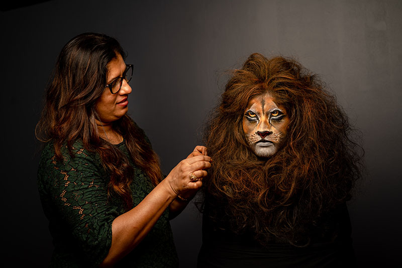 ಅಂತಾರಾಷ್ಟ್ರೀಯ ಮಟ್ಟದಲ್ಲಿ ಸೌಂದರ್ಯ, ರೂಪದರ್ಶಿ ತರಬೇತುದಾರರಾಗಿರುವ ಚೇತನಾ ತಮ್ಮ ಶಿಷ್ಯೆಯಾದ ಶ್ರೇಯಾ ಅವರ ಮುಖದ ಮೇಲೆ ಈ ಪ್ರಯೋಗ ಮಾಡಿದ್ದಾರೆ. ಕಾಲೇಜಿನಲ್ಲಿ ಹವ್ಯಾಸವಾಗಿ ಬ್ಯೂಟಿಶಿಯನ್ ಕಲೆಯನ್ನು ಕಲಿತುಕೊಂಡ ಚೇತನಾ ಬಿಎ (ಮನಶಾಸ್ತ್ರ) ಪದವೀಧರೆ. ಮೇಕಪ್ ಆರ್ಟ್, ಮೆಹೆಂದಿ ವಿನ್ಯಾಸದ ಬಗ್ಗೆ ಅಪಾರ ಆಸಕ್ತಿ ಹೊಂದಿದ್ದ ಇವರು ಅದನ್ನೇ ತಮ್ಮ ವೃತ್ತಿಯನ್ನಾಗಿಸಿದವರು. ಏನಾದರೂ ಹೊಸತನವನ್ನು ಮಾಡಬೇಕೆಂಬ ನಿಟ್ಟಿನಲ್ಲಿ ನವರಾತ್ರಿಯ ಸಂದರ್ಭದಲ್ಲಿ ಸಿಂಹದ ಮುಖವನ್ನು ಯುವತಿಯ ಮುಖದಲ್ಲಿ ಚಿತ್ರಿಸಿ ತಮ್ಮ ಕಲಾತ್ಮಕ ಪ್ರತಿಭೆಯನ್ನು ಪ್ರದರ್ಶಿಸಿದ್ದಾರೆ.