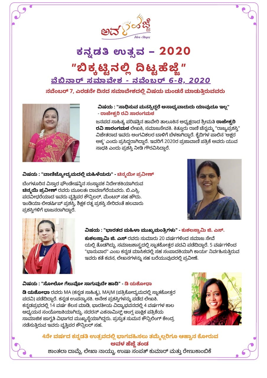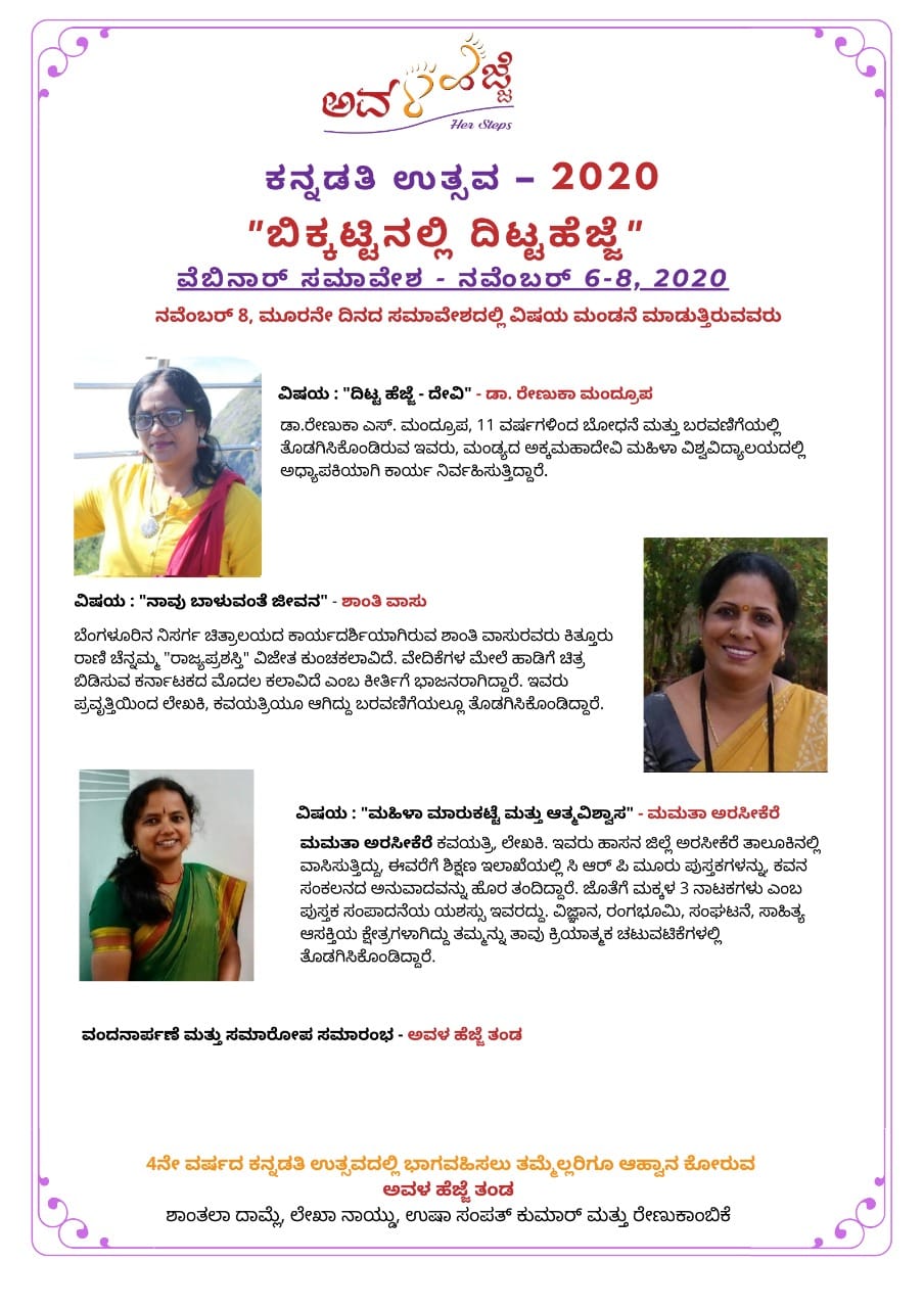 ಕನ್ನಡತಿ ಉತ್ಸವ- ಬಿಕ್ಕಟ್ಟಿನಲ್ಲಿ ದಿಟ್ಟ ಹೆಜ್ಜೆ : ನ.6-8ರವರೆಗೆ ವೆಬಿನಾರ್ ಸಮಾವೇಶ