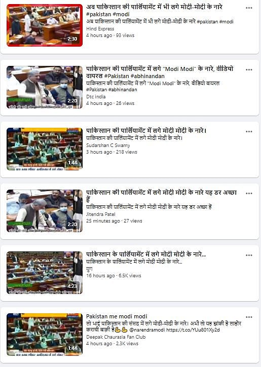 'ಇಂಡಿಯಾ ಟಿವಿ' ಪ್ರಸಾರ ಮಾಡಿರುವ ವೀಡಿಯೋದಲ್ಲಿ ಪಾಕ್ ವಿದೇಶಾಂಗ ಸಚಿವ ಶಾಹ್ ಮೆಹಮೂದ್ ಖುರೇಷಿ ಅವರು ಸಂಸತ್ತಿನಲ್ಲಿ ಮಾತನಾಡುತ್ತಿರುವುದು ಕಾಣಿಸುತ್ತದೆ. ಅವರ ಹೆಸರು ಹಾಕಿ ಗೂಗಲ್ ಸರ್ಚ್ ಮಾಡಿದಾಗ ಪಾಕಿಸ್ತಾನದ 92ನ್ಯೂಸ್ ಎಚ್ಡಿ ವಾಹಿನಿ ಅಪ್ಲೋಡ್ ಮಾಡಿದ ಒಂದು ವೀಡಿಯೋ ಕಂಡು ಬಂತು. ಇವರ ಹತ್ತು ನಿಮಿಷ ಅವಧಿಯ ಭಾಷಣದ ಸಂದರ್ಭದ ಕೆಲವೊಂದು ತುಣುಕುಗಳನ್ನು ಬಳಸಿ ಪಾಕ್ ಸಂಸತ್ತಿನಲ್ಲಿ ಮೋದಿ ಪರ ಘೋಷಣೆ ಕೂಗಲಾಗಿದೆ ಎಂದು ಹೇಳಿಕೊಳ್ಳಲು ಈ ಟಿವಿ ವಾಹಿನಿಗಳು ಬಳಸಿದ್ದವು.