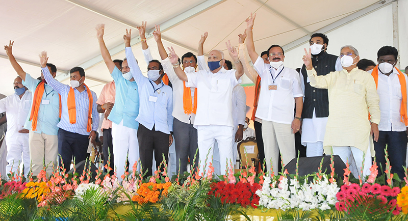 ಬಿಜೆಪಿ ಜಿಲ್ಲಾ ಘಟಕದ ಅಧ್ಯಕ್ಷ ಬಿ.ಸುರೇಶ್ ಗೌಡ, ಉಪಮುಖ್ಯಮಂತ್ರಿ ಗೋವಿಂದ ಕಾರಜೋಳ, ಸಚಿವ ನಾರಾಯಣಗೌಡ, ಸಂಸದರಾದ ನಾರಾಯಣಸ್ವಾಮಿ, ಪ್ರತಾಪ್ ಸಿಂಹ, ಮುನಿಸ್ವಾಮಿ, ಪಿ.ಸಿ.ಮೋಹನ್, ಮುಖ್ಯಮಂತ್ರಿ ರಾಜಕೀಯ ಕಾರ್ಯದರ್ಶಿ ರೇಣುಕಾಚಾರ್ಯ, ಶಾಸಕರಾದ ಜ್ಯೋತಿಗಣೇಶ್, ಬಿ.ಸಿ.ನಾಗೇಶ್, ಪೂರ್ಣಿಮಾ ಶ್ರೀನಿವಾಸ್, ತಿಪ್ಪಾರೆಡ್ಡಿ, ಬಸವರಾಜ ಬಂಡಿಮಠ, ಎಂಟಿಬಿ ನಾಗರಾಜ್, ಚಂದ್ರಪ್ಪ, ಸತೀಶ್ ರೆಡ್ಡಿ, ರಾಜುಗೌಡ, ಪ್ರೀತಂಗೌಡ, ವಿಧಾನ ಪರಿಷತ್ ಸದಸ್ಯ ರವಿಕುಮಾರ್ ಸೇರಿದಂತೆ ಹಲವರು ವೇದಿಕೆಯಲ್ಲಿದ್ದರು.