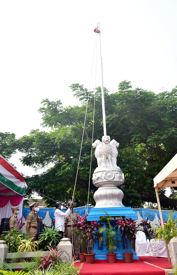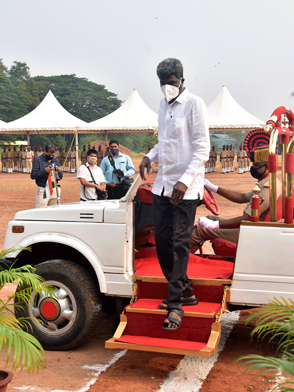 ಸರಳ ರಾಜ್ಯೋತ್ಸವ: ಕೋವಿಡ್ ಕರಿಛಾಯೆ ರಾಷ್ಟ್ರೀಯ, ನಾಡ ಹಬ್ಬ ಹರಿದಿನಗಳ ಮೇಲೂ ಬಿದ್ದಿರುವುದರಿಂದ ನಿಯಮಗಳ ಅನುಸರಣೆ, ಹೆಚ್ಚು ಜನಸಂದಣಿ ಸೇರುವುದನ್ನು ತಪ್ಪಿಸುವ ನಿಟ್ಟಿನಲ್ಲಿ ಈ ಬಾರಿಯ ಜಿಲ್ಲಾ ಮಟ್ಟದ ರಾಜ್ಯೋತ್ಸವ ಕಾರ್ಯಕ್ರಮದಲ್ಲಿ ಪಥ ಸಂಚಲನ ಹಾಗೂ ಸಾಂಸ್ಕೃತಿಕ ಕಾರ್ಯಕ್ರಮವನ್ನು ಮೊಟಕುಗೊಳಿಸಲಾಗಿತ್ತು.