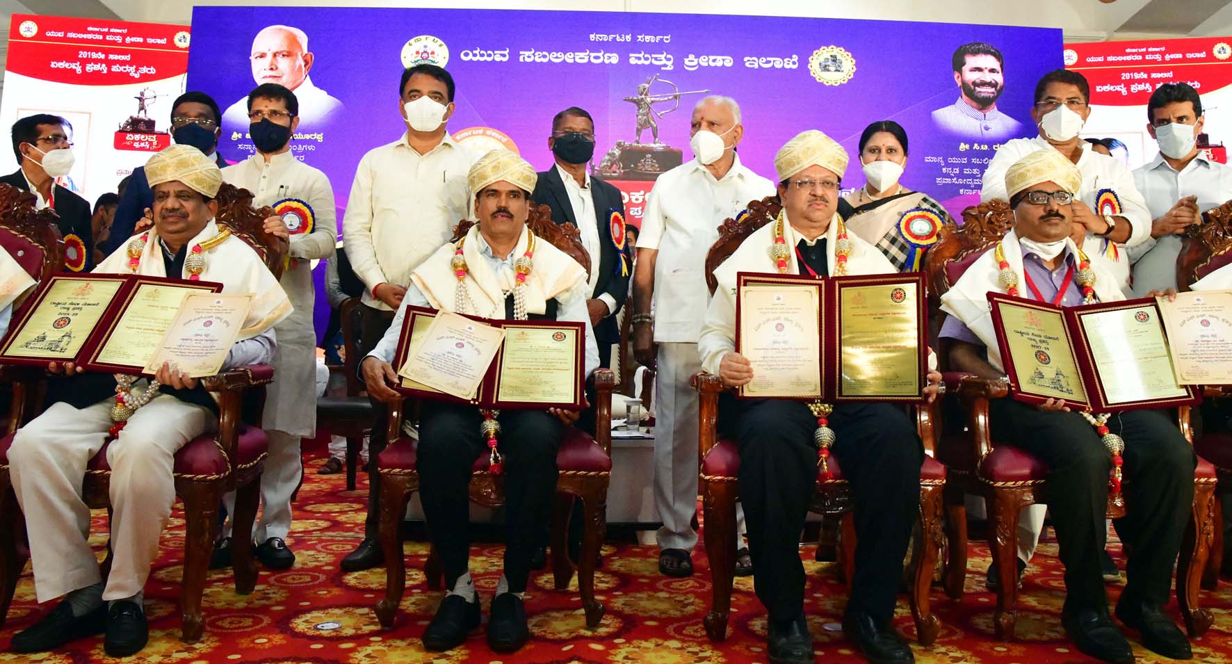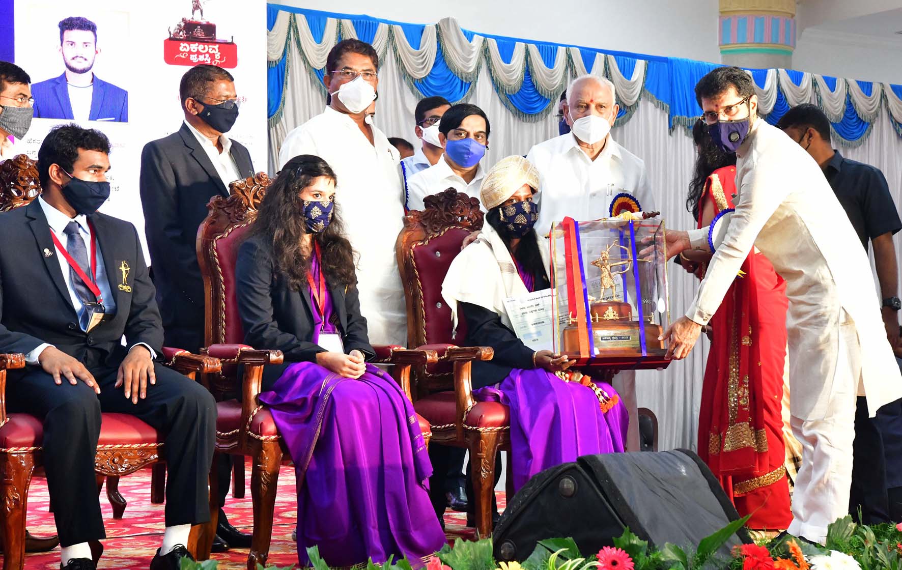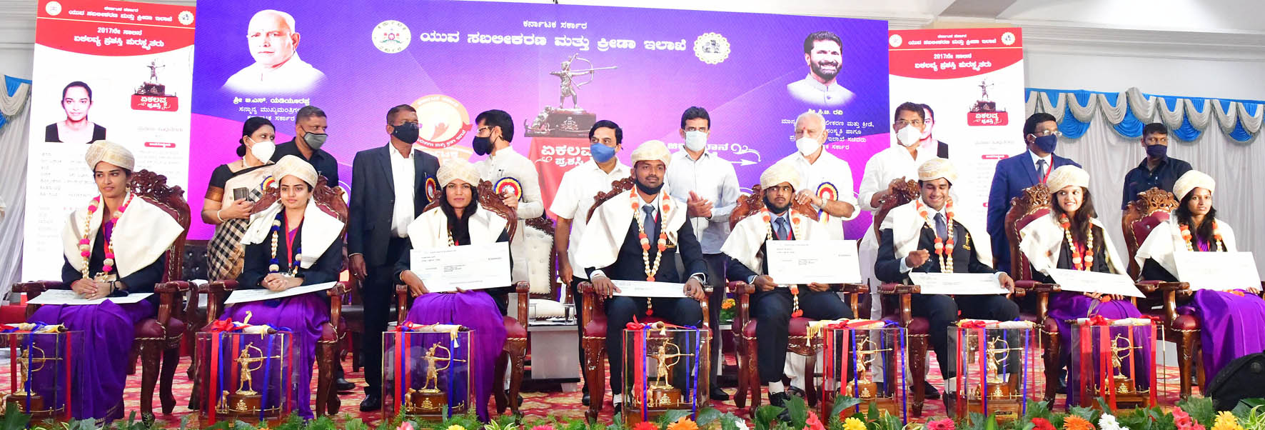 ಸಮಾರಂಭದಲ್ಲಿ 2017, 2018 ಮತ್ತು 2019ನೆ ಸಾಲಿನ ಏಕಲವ್ಯ ಸಹಿತ ವಿವಿಧ ಸ್ಪರ್ಧೆಗಳಲ್ಲಿ ಸಾಧನೆ ಗೈದ ಕ್ರೀಡಾಪಟುಗಳಿಗೆ ಪ್ರಶಸ್ತಿ ನೀಡಿ ಗೌರವಿಸಲಾಯಿತು. ಕಾರ್ಯಕ್ರಮದಲ್ಲಿ ಉಪಮುಖ್ಯಮಂತ್ರಿ ಡಾ.ಅಶ್ವತ್ಥ ನಾರಾಯಣ, ಕಂದಾಯ ಸಚಿವ ಆರ್.ಅಶೋಕ್, ಒಲಂಪಿಕ್ಸ್ ಸಂಸ್ಥೆಯ ಅಧ್ಯಕ್ಷ ಹಾಗೂ ಮೇಲ್ಮನೆ ಸದಸ್ಯ ಕೆ.ಗೋವಿಂದರಾಜು ಸೇರಿದಂತೆ ಇನ್ನಿತರರು ಹಾಜರಿದ್ದರು.