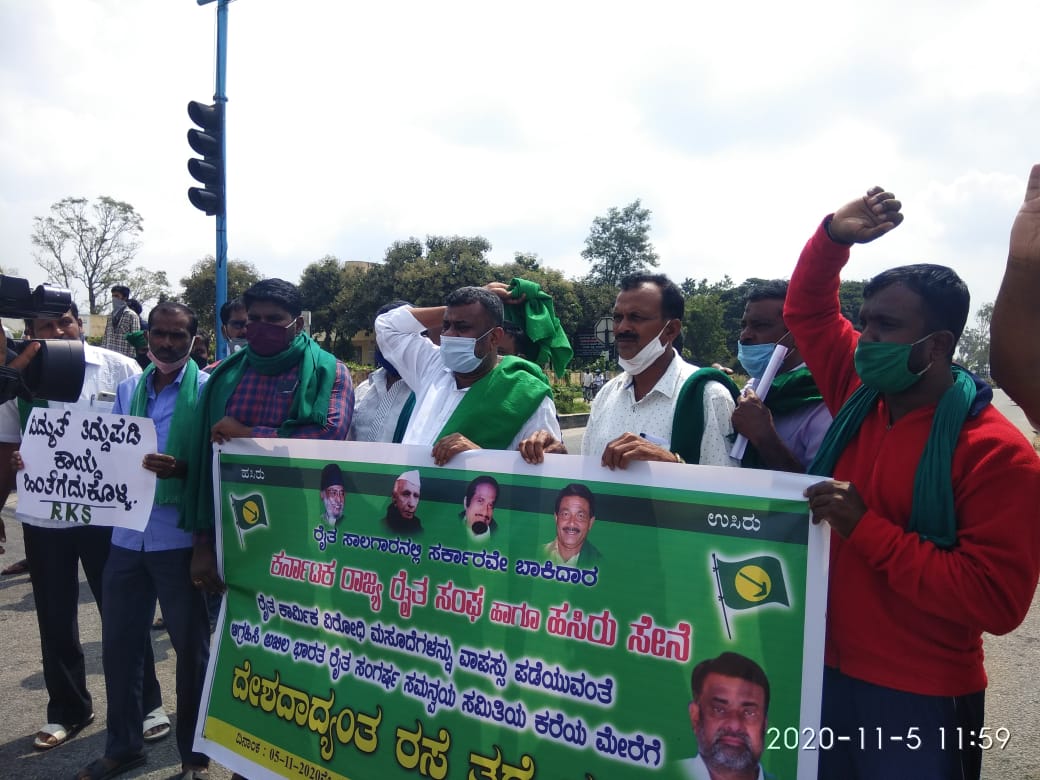ಕರ್ನಾಟಕ ರಾಜ್ಯ ರೈತ ಸಂಘ ಹಾಗೂ ಹಸಿರು ಸೇನೆ ವತಿಯಿಂದ ನಗರದ ಮೈಸೂರು-ನಂಜನಗೂಡು ರಸ್ತೆಯ ರಾಷ್ಟ್ರೀಯ ಹೆದ್ದಾರಿ 212 ರ ರಿಂಗ್ ರಸ್ತೆ ಜಂಕ್ಷನ್ ನಲ್ಲಿ ಜಮಾಯಿಸಿದ ರೈತರು ಕೇಂದ್ರ ಮತ್ತು ರಾಜ್ಯ ಸರ್ಕಾರಗಳ ವಿರುದ್ಧ ಧಿಕ್ಕಾರ ಕೂಗಿ ತಮ್ಮ ಆಕ್ರೋಶ ವ್ಯಕ್ತಪಡಿಸಿದರು.