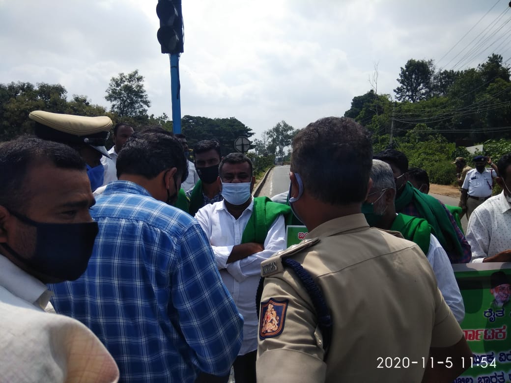 ಈ ವೇಳೆ ಆಗಮಿಸಿದ ಪೊಲೀಸರು ದಯವಿಟ್ಟು ರಸ್ತೆ ತಡೆ ನಿಲ್ಲಿಸಿ ಇಲ್ಲದಿದ್ದರೆ ಕಾನೂನು ಕ್ರಮ ಜರುಗಿಸಬೇಕಾಗುತ್ತದೆ ಎಂದು ಹೇಳಿದರು. ಇದಕ್ಕೆ ಪ್ರತಿಕ್ರಿಸಿದ ಬಡಗಲಪುರ ನಾಗೇಂದ್ರ ಇನ್ನು ಹತ್ತು ನಿಮಿಷ ಅವಕಾಶ ನೀಡುವಂತೆ ಮನವಿ ಮಾಡಿದರು. ನಂತರ ಸ್ಥಳಕ್ಕಾಗಮಿಸಿದ ಡಿಸಿಪಿ ರಸ್ತೆ ತಡೆ ಬಿಟ್ಟು ಒಂದು ಕಡೆ ಕುಳಿತು ಪ್ರತಿಭಟನೆ ನಡೆಸುವಂತೆ ಸೂಚಿಸಿದರು.