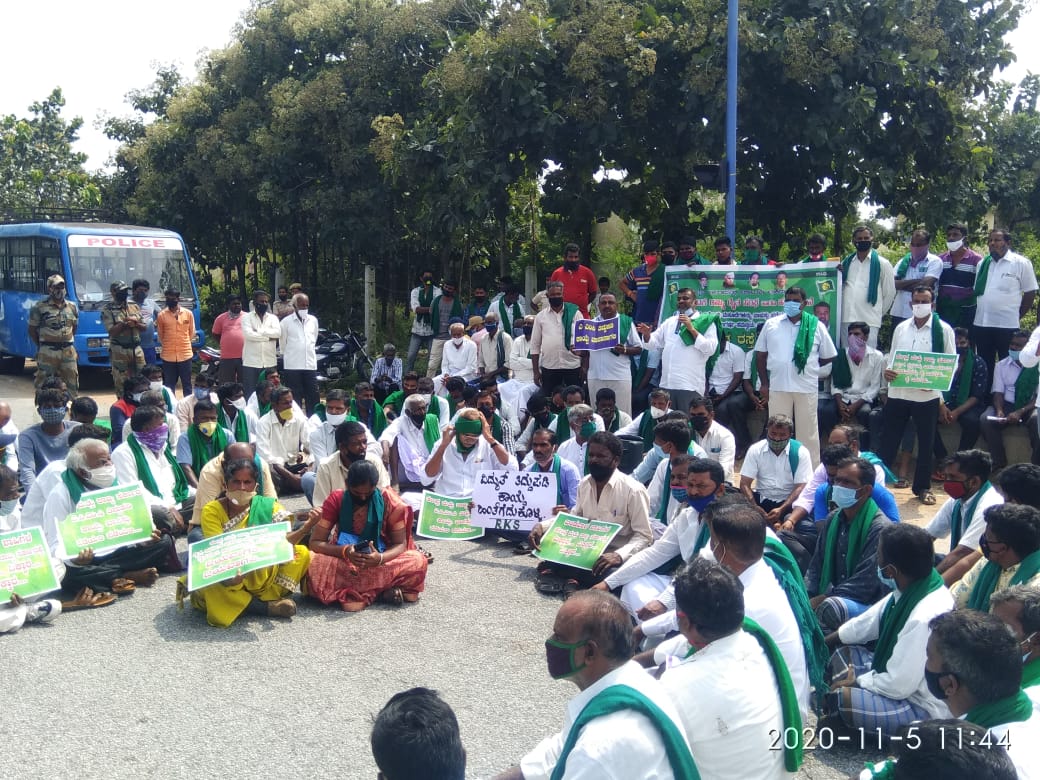 ಅಖಿಲ ಭಾರತ ರೈತ ಸಂಘರ್ಷ ಸಮಿತಿ ಕರೆಯ ಮೇರೆಗೆ ದೇಶಾದ್ಯಂತ ಹೆದ್ದಾರಿ ತಡೆ ನಡೆಸಲಾಗುತ್ತಿದೆ.ಮುಂದಿನಗಳಲ್ಲಿ ನಮ್ಮ ಹೋರಾಟ ಮತ್ತಷ್ಟು ಉಗ್ರ ಸ್ವರೂಪ ಪಡೆಯಲಿದೆ ಎಂದು ಹೇಳಿದರು. ಇದೇ ವೇಳೆ ಕೇಂದ್ರ ಸರ್ಕಾರ ರೈತ ವಿರೋಧಿ ಮಸೂದೆಯ ಪ್ರತಿಯನ್ನು ಸುಟ್ಟುಹಾಕಿ ಧಿಕ್ಕಾರ ಕೂಗಿದರು. ಪ್ರತಿಭಟನೆಯಲ್ಲಿ ರೈತ ಮುಖಂಡರುಗಳಾದ ಹೊಸಕೋಟೆ ಬಸವರಾಜು, ಪುನೀತ್, ಪಿ.ಮರಂಕಯ್ಯ, ಎಪಿಎಂಸಿ ಅಧ್ಯಕ್ಷ ಬಸವರಾಜು, ಉಪಾಧ್ಯಕ್ಷ ಅಹಿಂದ ಜವರಪ್ಪ, ಕಾರ್ಮಿಕ ಮುಖಂಡ ಸುನೀಲ್ ಸೇರಿದಂತೆ ಹಲವಾರು ರೈತರು ಪ್ರತಿಭಟನೆ ಯಲ್ಲಿ ಭಾಗವಹಿಸಿದ್ದರು.