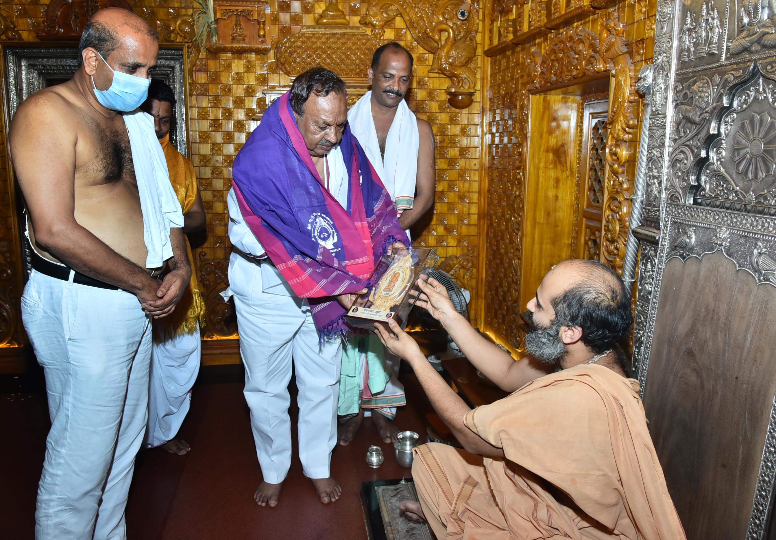 ಉಡುಪಿ : ರಾಜ್ಯ ಗ್ರಾಮೀಣಾಭಿವೃದ್ಧಿ, ಪಂಚಾಯತ್ರಾಜ್ ಸಚಿವರಾದ ಕೆ.ಎಸ್.ಈಶರಪ್ಪ ಅವರು ಗುರುವಾರ ಸಂಜೆ ಉಡುಪಿ ಶ್ರೀಕೃಷ್ಣ ಮಠಕ್ಕೆ ಭೇಟಿ ನೀಡಿದರು. ಪರ್ಯಾಯ ಅದಮಾರು ಮಠದ ಶ್ರೀಈಶಪ್ರಿಯತೀರ್ಥರಿಂದ ಅನುಗ್ರಹ ಮಂತ್ರಾಕ್ಷತೆ ಹಾಗೂ ಪ್ರಸಾದ ಸ್ವೀಕರಿಸಿದರು.