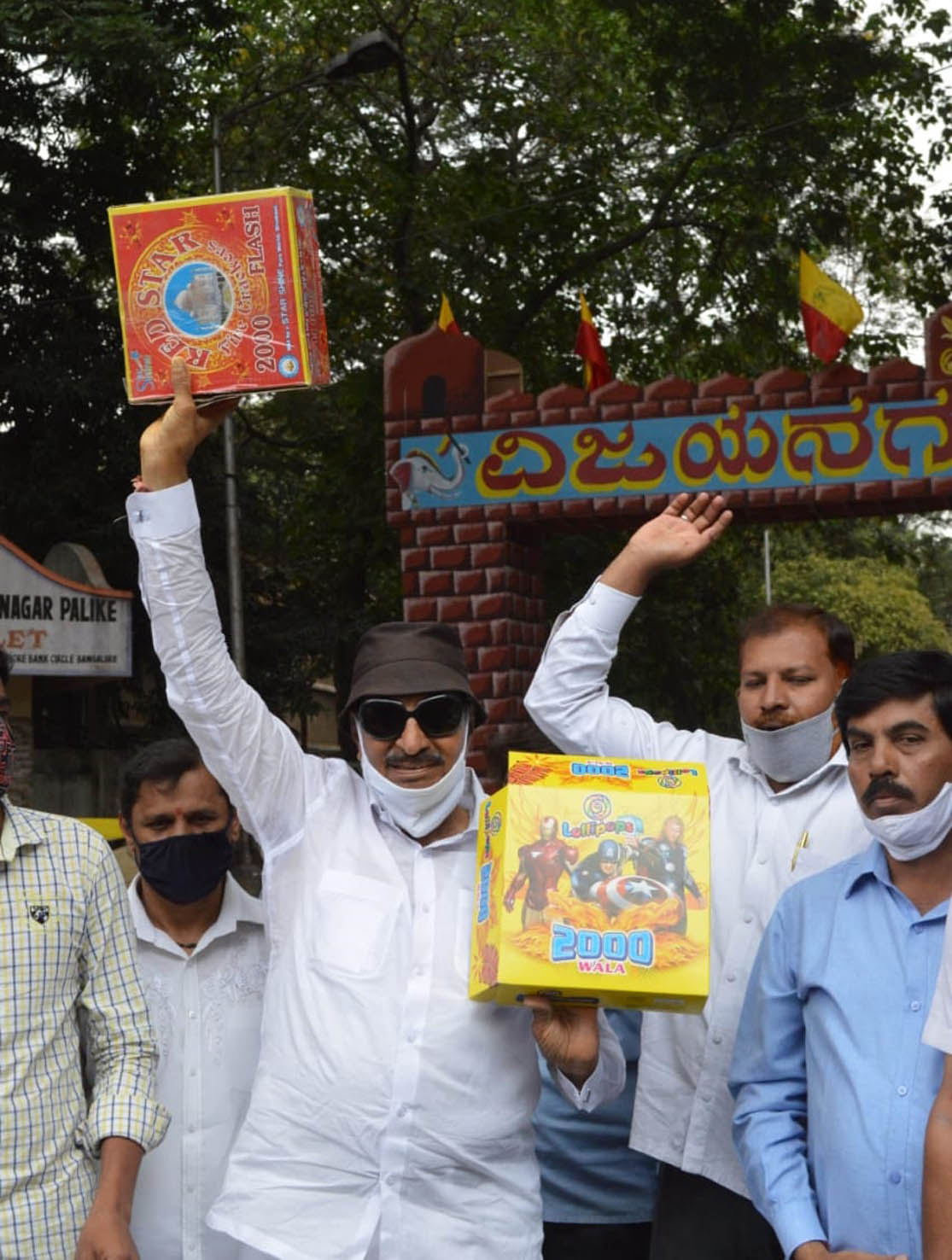 ಬೆಂಗಳೂರು: 'ಪಟಾಕಿ ನಿಷೇಧ'ದ ವಿರುದ್ಧ ಪಟಾಕಿ ಸಿಡಿಸುವ ಮೂಲಕ ಪ್ರತಿಭಟನೆ