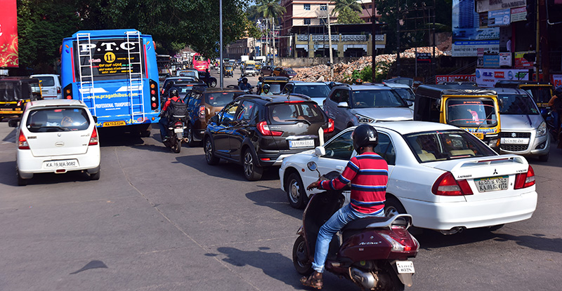 ಮಂಗಳೂರು, ನ. 9: ನಗರದ ಹಲವು ಭಾಗಗಳಲ್ಲಿ ಸ್ಮಾರ್ಟ್ ಸಿಟಿ ಯೋಜನೆ ಸೇರಿದಂತೆ ಹಲವೆಡೆ ರಸ್ತೆ ಕಾಮಗಾರಿಗಳು ಏಕಕಾಲದಲ್ಲಿ ಚಾಲ್ತಿಯಲ್ಲಿರುವುದರಿಂದ ಸುಗಮ ಸಂಚಾರಕ್ಕೆ ಅಡ್ಡಿಯಾಗಿ ವಾಹನ ಸವಾರರು ಪರದಾಡುವ, ಕಿರಿಕಿರಿ ಅನುಭವಿಸುವ ಪರಿಸ್ಥಿತಿ ನಿರ್ಮಾಣ ವಾಗಿದೆ. ರಸ್ತೆ ಕಾಮಗಾರಿಯ ಜತೆಯಲ್ಲೇ ನೀರಿನ ಪೈಪ್ ಅಳವಡಿಕೆ, ಒಳಚರಂಡಿ ಕಾಮಗಾರಿಗಳನ್ನೂ ನಡೆಸಲಾಗುತ್ತಿದ್ದು, ಪ್ರಮುಖ ರಸ್ತೆಗಳಲ್ಲಿ ಸಂಚಾರವನ್ನು ನಿಷೇದಿಸಲಾಗಿರುವುದರಿಂದ ಇತರ ರಸ್ತೆಗಳಲ್ಲಿ ಟ್ರಾಫಿಕ್ ಜಾವ್ ಕಿರಿಕಿರಿಯನ್ನು ಅನುಭವಿಸಬೇಕಾಗಿದೆ.