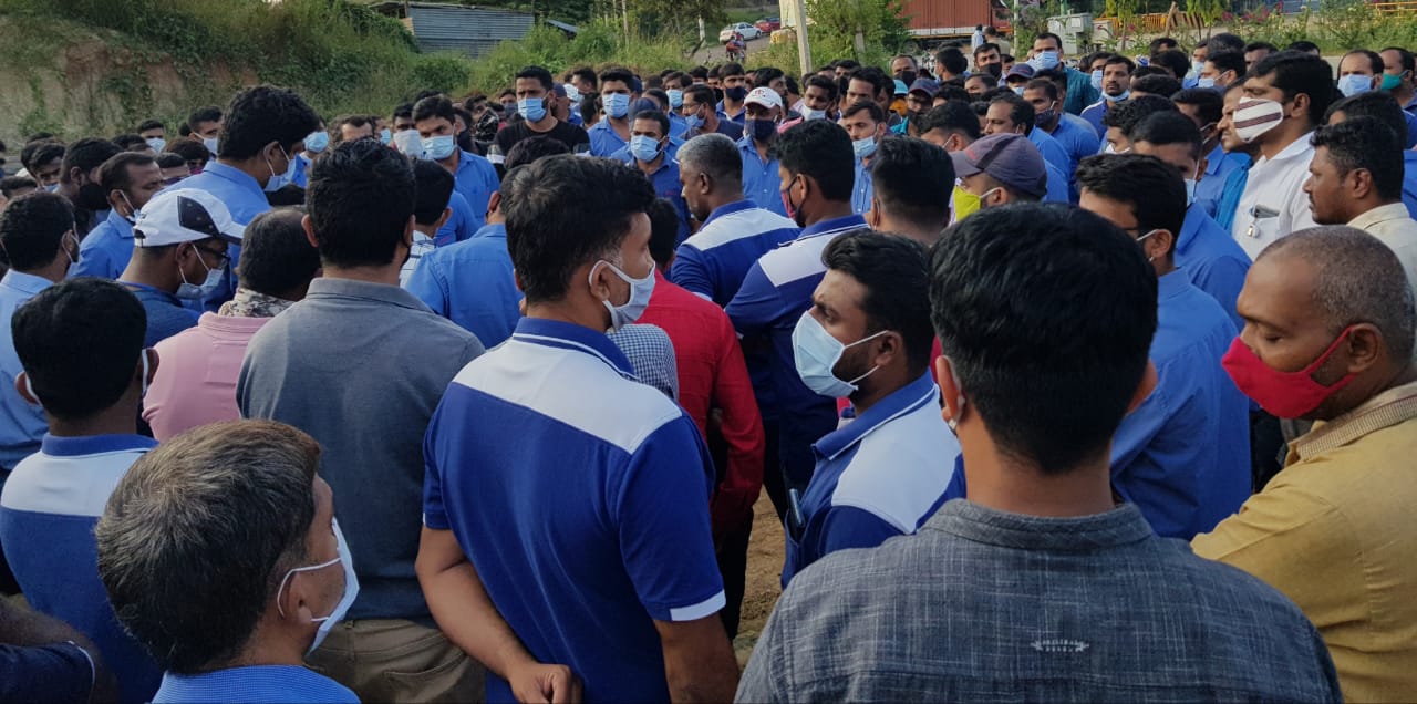 ಕೊರೋನ ಸಂದರ್ಭದಲ್ಲಿಯೂ ಉತ್ಪಾದನೆ ನಿಲ್ಲಿಸದೆ ಜೀವದ ಹಂಗನ್ನು ತೊರೆದು ಕಾರ್ಮಿಕರು ದುಡಿದಿದ್ದಾರೆ. ಆ ಬಳಿಕವೂ ಕಾರ್ಮಿಕರ ಮೇಲಿನ ಕೆಲಸದ ಒತ್ತಡ ಮತ್ತಷ್ಟು ಹೆಚ್ಚಿದ್ದು, ಬಿಕ್ಕಟ್ಟು ಸೃಷ್ಟಿಸಿದೆ. ಆಡಳಿತ ಮಂಡಳಿ, ಕಾರ್ಮಿಕ ಸಂಘದ ಜತೆ ಯಾವುದೇ ರೀತಿಯ ಚರ್ಚೆಗೆ ಸಿದ್ದವಿಲ್ಲ. ಅವರು ಹೇಳಿದ್ದೆ ಇಲ್ಲಿ ಕಾನೂನು. ಪ್ರಶ್ನಿಸಿದರೆ ನೋಟಿಸ್, ಏಕಪಕ್ಷೀಯವಾಗಿ ಅಮಾನತು ಮಾಡುವುದು ಎಂದರೆ, ಕಾರ್ಮಿಕರು ಗುಲಾಮರಲ್ಲ' ಎಂದು ಆಕ್ರೋಶ ವ್ಯಕ್ತಪಡಿಸಿದರು.
