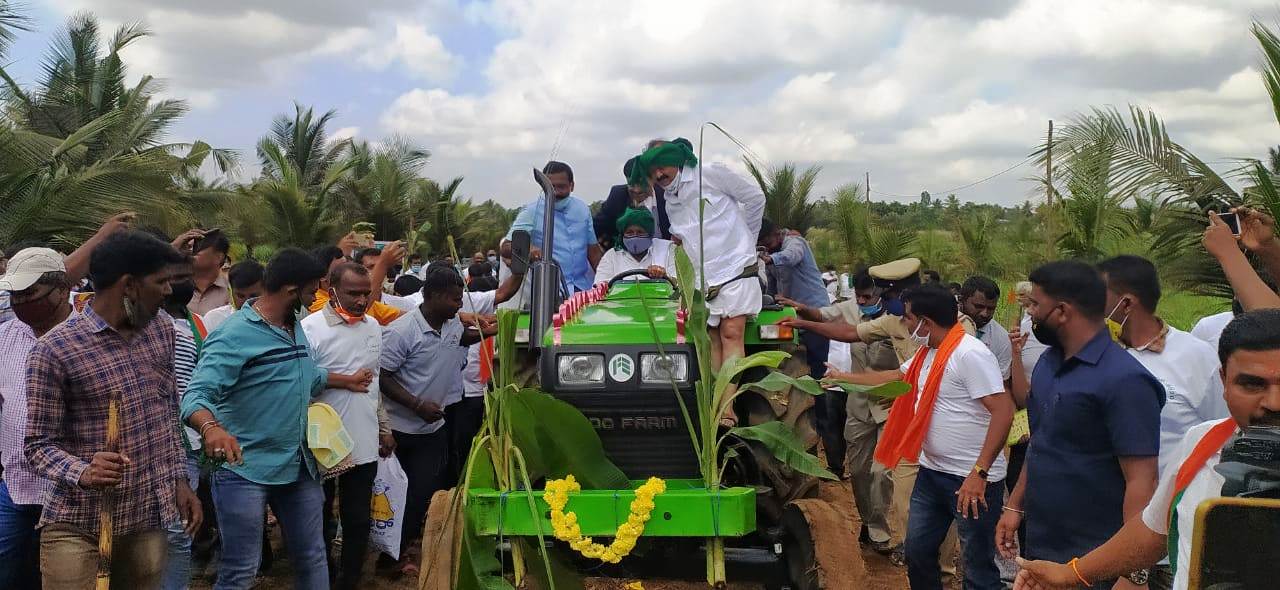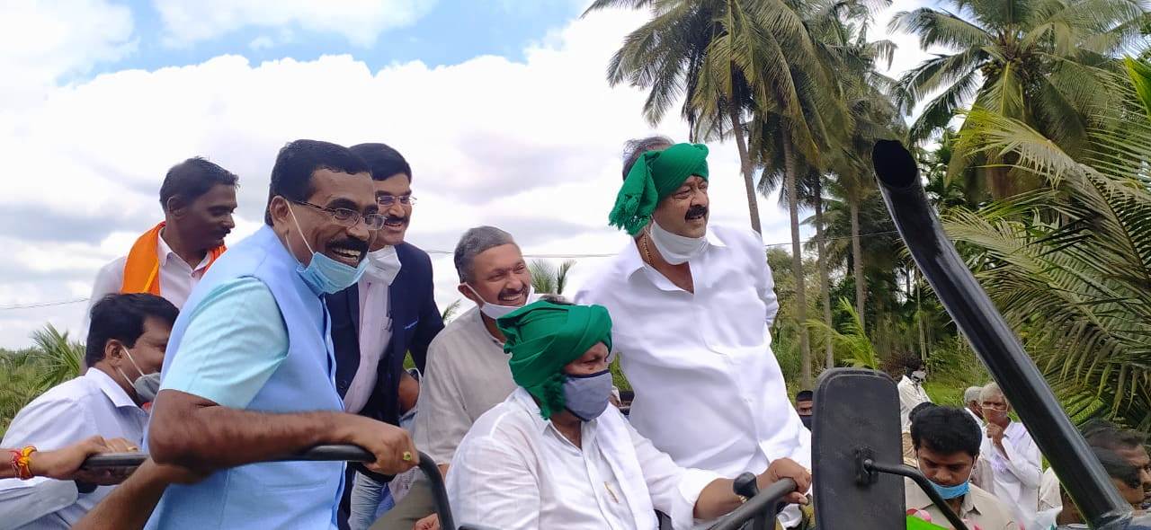 ಈ ಸಂದರ್ಭದಲ್ಲಿ ಚಾಫ್ಕಟರ್ ನಿಂದ ಹಸುಗಳ ಮೇವಿಗಾಗಿ ಹುಲ್ಲು ಕತ್ತರಿಸಿದ ಬಿ.ಸಿ.ಪಾಟೀಲ್, ಬಳಿಕ ಹಸುವಿನ ಹಾಲು ಕರೆದು, ಸಾವಯವ ಹಾಲಿನ ಕೇಂದ್ರದ ವೀಕ್ಷಣೆ ಮಾಡಿದರು. ನಂತರ, ರಾಗಿ ಪೈರು ನಾಟಿ ಕಾರ್ಯದಲ್ಲಿ ಭಾಗಿಯಾದರು. ರೈತರ ಜತೆ ಭತ್ತದ ಬೆಳೆಗೆ ಗೊಬ್ಬರ ಎರಚಿದರು, ಟ್ರ್ಯಾಕ್ಟರ್ ಚಾಲನೆ ಮಾಡಿದರು.