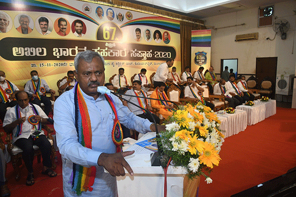 ಮಂಗಳೂರಿನ ಟಿ.ವಿ.ರಮಣ ಪೈ ಸಭಾಂಗಣದಲ್ಲಿ ರವಿವಾರ ರಾಜ್ಯ ಮಟ್ಟದ 67ನೇ ಅಖಿಲ ಭಾರತ ಸಹಕಾರ ಸಪ್ತಾಹವನ್ನು ಉದ್ಘಾಟಿಸಿ ಅವರು ಮಾತನಾಡುತ್ತಿದ್ದರು.