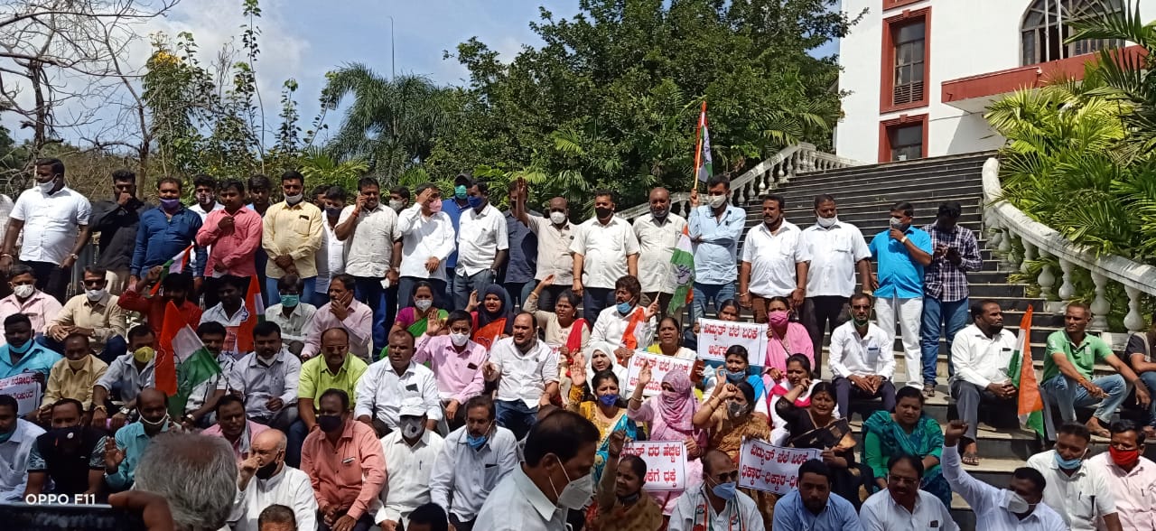 ಶಿವಮೊಗ್ಗ : ವಿದ್ಯುತ್ ಬೆಲೆ ಏರಿಕೆ ಖಂಡಿಸಿ ರಾಜ್ಯ ಸರ್ಕಾರದ ವಿರುದ್ಧ ಜಿಲ್ಲಾ ಕಾಂಗ್ರೆಸ್ ಸಮಿತಿ ವತಿಯಿಂದ ನಗರದ ಜಿಲ್ಲಾಧಿಕಾರಿ ಕಚೇರಿ ಆವರಣದಲ್ಲಿ ಪ್ರತಿಭಟನೆ ನಡೆಸಿದರು.