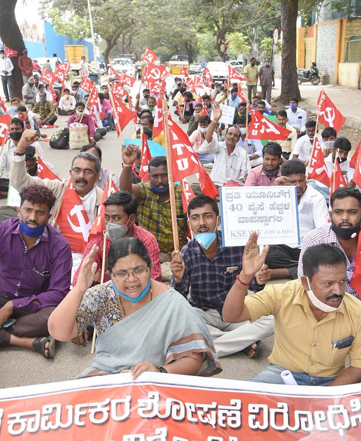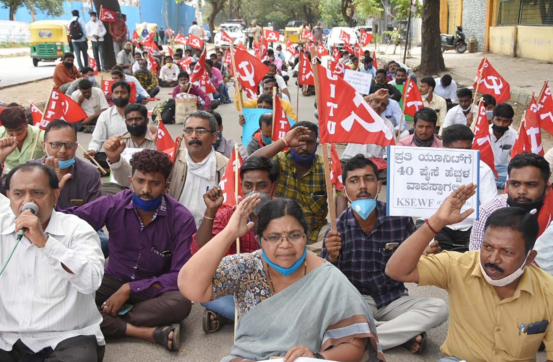 ಇಂಧನ ಇಲಾಖೆಯ ಗುತ್ತಿಗೆ ಕಾರ್ಮಿಕರ ಕಾಯಂಗೆ ಆಗ್ರಹಿಸಿ ಧರಣಿ