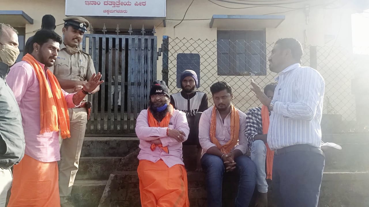 ಬಾಬಾ ಬುಡನ್ ಗಿರಿ ಆವರಣದಲ್ಲಿ ಆಝಾನ್ ಆರೋಪ: ಪೊಲೀಸ್ ಠಾಣೆ ಎದುರು ಶ್ರೀರಾಮಸೇನೆ ದಿಢೀರ್ ಧರಣಿ
