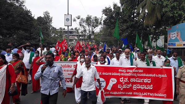 ಕಾರ್ಮಿಕ ಸಂಹಿತೆಗಳ ವಾಪಸ್ಸಾತಿ, ರೈತ ವಿರೋಧಿ ಎಪಿಎಂಸಿ ಕಾಯ್ದೆ, ಭೂಸುಧಾರಣೆ ಕಾಯ್ದೆ, ಕೃಷಿ ಸಂಬಂಧಿತ ಕಾನೂನು ತಿದ್ದುಪಡಿ ಕೈಬಿಡಬೇಕು, ಸಾರ್ವಜನಿಕ ಉದ್ದಿಮೆಗಳ ಖಾಸಗೀಕರಣ ಕೈಬಿಡಬೇಕು ಎಂದು ಒತ್ತಾಯಿಸಿದರು.