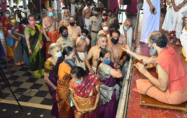 ತಪ್ತ ಮುದ್ರಾಧಾರಣೆ ಪೂರ್ವಾಹ್ನ 11ರಿಂದ ಮಧ್ಯಾಹ್ನ 12:30ರವರೆಗೆ ನಡೆಯಿತು. ಇದರಲ್ಲಿ ಭಾಗವಹಿಸುವ ಭಕ್ತರು ಸುರಕ್ಷತಾ ಅಂತರವನ್ನು ಕಾಯ್ದು ಕೊಂಡು, ಮಾಸ್ಕ್ ಧರಿಸಿ, ಸ್ಯಾನಿಟೈಸರ್ನ್ನು ಉಪಯೋಗಿಸುವ ಮೂಲಕ ಸರಕಾರದ ಎಲ್ಲಾ ಕೋವಿಡ್ ಮಾರ್ಗಸೂಚಿಗಳನ್ನು ಪಾಲಿಸುವಂತೆ ಸೂಚನೆ ನೀಡಿದ್ದರೂ ಹೆಚ್ಚಿನವರು ಇದನ್ನು ಪಾಲಿಸುವತ್ತ ಗಮನ ಹರಿಸಲಿಲ್ಲ.