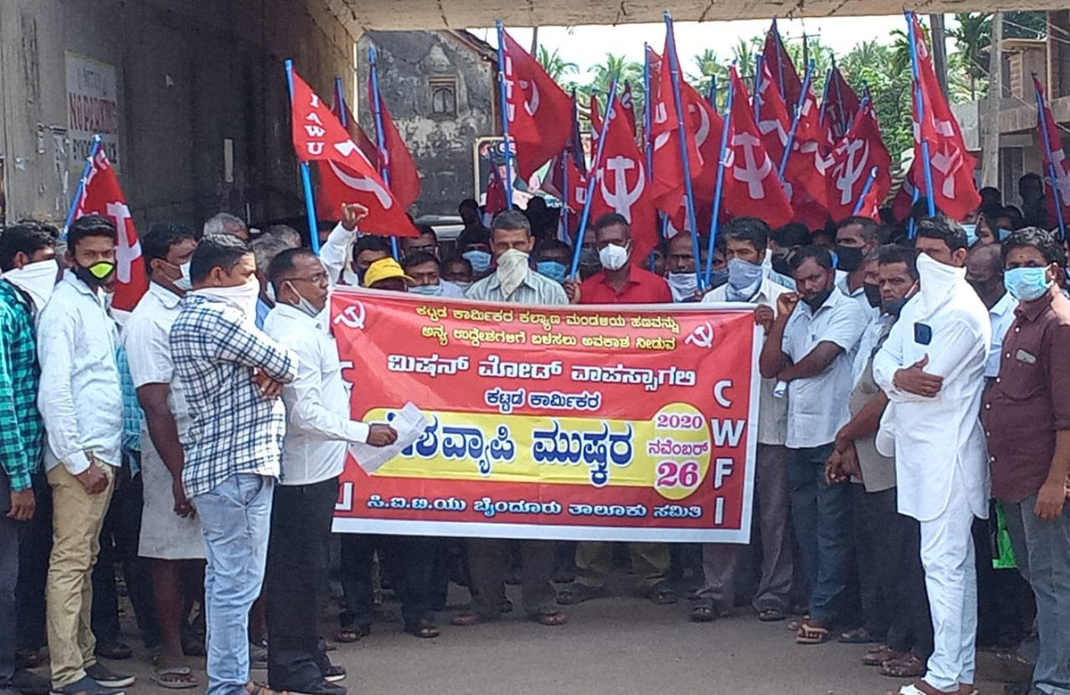 ಈ ಪ್ರಯುಕ್ತ ಹಾಲಾಡಿ ಬಿದ್ಕಲ್ಕಟ್ಟೆಯಲ್ಲಿ ಕಟ್ಟಡ ಕಾರ್ಮಿಕರು ಪ್ರತಿಭಟನೆ ಮೆರವಣಿಗೆ ನಡೆಸಿದರು. ಸಿದ್ದಾಪುರದಲ್ಲಿ ಕಟ್ಟಡ, ಗೇರುಬೀಜ ಕಾರ್ಖಾನೆ ಕಾರ್ಮಿಕರು ಮೆರವಣಿಗೆ ನಡೆಸಿ ಬಸ್ ನಿಲ್ದಾಣ ಬಳಿ ಪ್ರತಿಭಟನೆ ನಡೆಸಿದರು. ಕಾರ್ಮಿಕ ಮುಖಂಡರಾದ ದಾಸ ಭಂಡಾರಿ, ಪಿ.ಟಿ. ಅಲೆಕ್ಸ್, ಸಾವಿತ್ರಿ ಮೊದಲಾದವರು ಉಪಸ್ಥಿತರಿದ್ದರು.