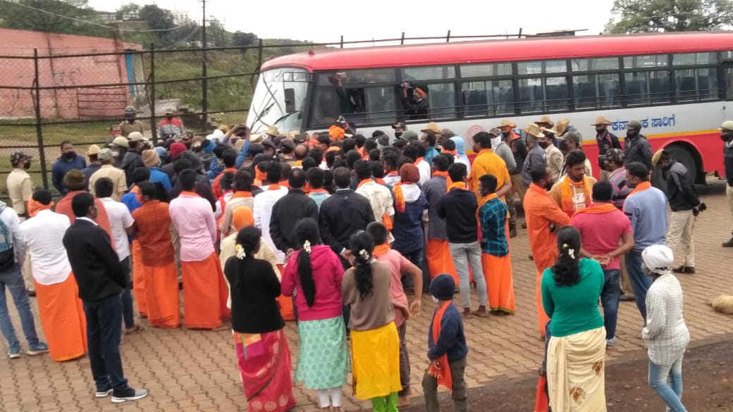 ನಿರ್ಬಂಧಿತ ಪ್ರದೇಶಕ್ಕೆ ನುಗ್ಗುವ ಯತ್ನ: ಜಿಲ್ಲಾಧಿಕಾರಿ ಸ್ಥಳಕ್ಕೆ ಬಾರದಿದ್ದಾಗ ಗಿರಿ ಆವರಣದಲ್ಲಿ ನಮಾಝ್ ಮಾಡುವ ಜಾಗಕ್ಕೆ ರಿಷಿಕುಮಾರ ಸ್ವಾಮೀಜಿ ಸೇರಿದಂತೆ ಶ್ರೀರಾಮಸೇನೆ ಮುಖಂಡರು, ಕಾರ್ಯಕರ್ತರು ನುಗ್ಗಲು ಮುಂದಾದರು. ಆದರೆ ಪೊಲೀಸರ ಸರ್ಪಗಾವಲು ಭೇದಿಸಲು ಕಾರ್ಯಕರ್ತರಿಗೆ ಸಾಧ್ಯವಾಗದ ಪರಿಣಾಮ ಮುಖಂಡರು ಪೊಲೀಸರೊಂದಿಗೆ ಮಾತಿನ ಚಕಮಕಿ ನಡೆಯಿತು.