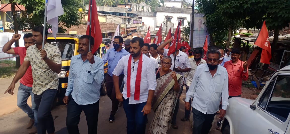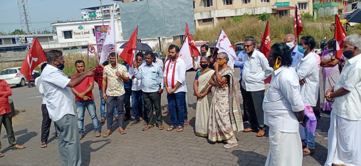 ತೊಕ್ಕೊಟ್ಟು. ನ,2: ಕೇಂದ್ರ ಸರಕಾರದ ರೈತ ಕಾರ್ಮಿಕ ವಿರೋಧಿ ನೀತಿಗಳ ವಿರುದ್ಧ ಇಂದು (ನವೆಂಬರ್26) ಕೇಂದ್ರ ಕಾರ್ಮಿಕ ಸಂಘಟನೆಗಳ ಒಕ್ಕೂಟ (JCTU)ದ ನೇತೃತ್ವದಲ್ಲಿ ಕರೆ ನೀಡಿದ್ದ ಅಖಿಲ ಭಾರತ ಮಹಾಮುಷ್ಕರದ ಭಾಗವಾಗಿ ತೊಕ್ಕೊಟ್ಟು ಒಳಪೇಟೆ ಅಂಬೇಡ್ಕರ್ ಮೈದಾನದ ಮುಂಭಾಗದಿಂದ ಮೆರವಣಿಗೆ ಹೊರಟ ಸಿಐಟಿಯು, DYFI, CWFI, ಕೋಟೆಕಾರ್ ಸರ್ಕಲ್ ಬೀಡಿ ಲೇಬರ್ ಯೂನಿಯನ್, ಜನವಾದಿ ಮಹಿಳಾ ಸಂಘಟನೆ, ಬಿಸಿಯೂಟ ನೌಕರರ ಸಂಘ, ರಾಣಿ ಅಬ್ಬಕ್ಕ ಬಸ್ಸು ನೌಕರರ ಸಂಘದ ಕಾರ್ಯಕರ್ತರು ತೊಕ್ಕೊಟ್ಟು ಬಸ್ ನಿಲ್ದಾಣದಲ್ಲಿ ಸಭೆ ಸೇರಿ ಕೇಂದ್ರ ಹಾಗೂ ರಾಜ್ಯ ಸರ್ಕಾರದ ಜನವಿರೋಧಿ ನೀತಿಗಳ ವಿರುದ್ಧ ಪ್ರತಿಭಟನೆ ನಡೆಸಿದರು.