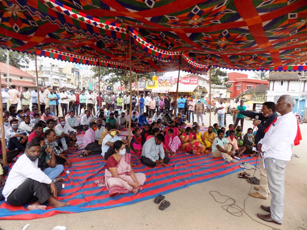 ಎಐಟಿಯುಸಿ ಜಿಲ್ಲಾಧ್ಯಕ್ಷ ಕೆ.ಗುಣಶೇಖರ್ ಮಾತನಾಡಿ, ಕೇಂದ್ರದ ಮೋದಿ ಸರಕಾರಕ್ಕೆ ಕಾರ್ಮಿಕರು, ಬಡವರು, ರೈತರ ಮೇಲೆ ನಿಜವಾಗಿಯೂ ಕಾಳಜಿ ಇದ್ದಿದ್ದಲ್ಲಿ ಜನಪರ ಕಾಯ್ದೆಗಳಿಗೆ ಹಿಂಬಾಗಿಲ ಮೂಲಕ ತಿದ್ದುಪಡಿ ತರುತ್ತಿರಲಿಲ್ಲ. ಮೋದಿ ಸರಕಾರಕ್ಕೆ ದೇಶದ ಜನರ ಹಿತಕ್ಕಿಂತ ಬಂಡವಾಳಿಗರ ಹಿತ ಮುಖ್ಯವಾಗಿದೆ. ಈ ಕಾರಣಕ್ಕೆ ಕಾರ್ಮಿಕರು, ರೈತರ ಪರವಾಗಿದ್ದ ಕಾನೂನುಗಳನ್ನು ಬಂಡವಾಳಿಗರ ಪರ ಮಾಡಲಾಗಿದೆ. ಸಾರ್ವಜನಿಕ ಕ್ಷೇತ್ರದ ಸಂಸ್ಥೆಗಳಾದ ರೈಲ್ವೆ, ಬಿಎಸ್ಸೆನೆಲ್, ಬ್ಯಾಂಕ್, ಎಲ್ಐಸಿಯಂತಹ ಸಂಸ್ಥೆಗಳನ್ನು ಖಾಸಗೀಕರಣಗೊಳಿಸಲಾಗುತ್ತಿದೆ. ಇಂತಹ ಸರಕಾರದ ವಿರುದ್ಧ ಜನರು ಧ್ವನಿ ಎತ್ತದಿದ್ದಲ್ಲಿ ಇಡೀ ದೇಶ ಖಾಸಗಿ ಕಂಪೆನಿಗಳ ಪಾಲಾಗಲಿದೆ. ಕಾರ್ಮಿಕರು, ರೈತರ ಬದುಕು ಬೀದಿಗೆ ಬರಲಿದೆ ಎಂದು ಎಚ್ಚರಿಸಿದರು.