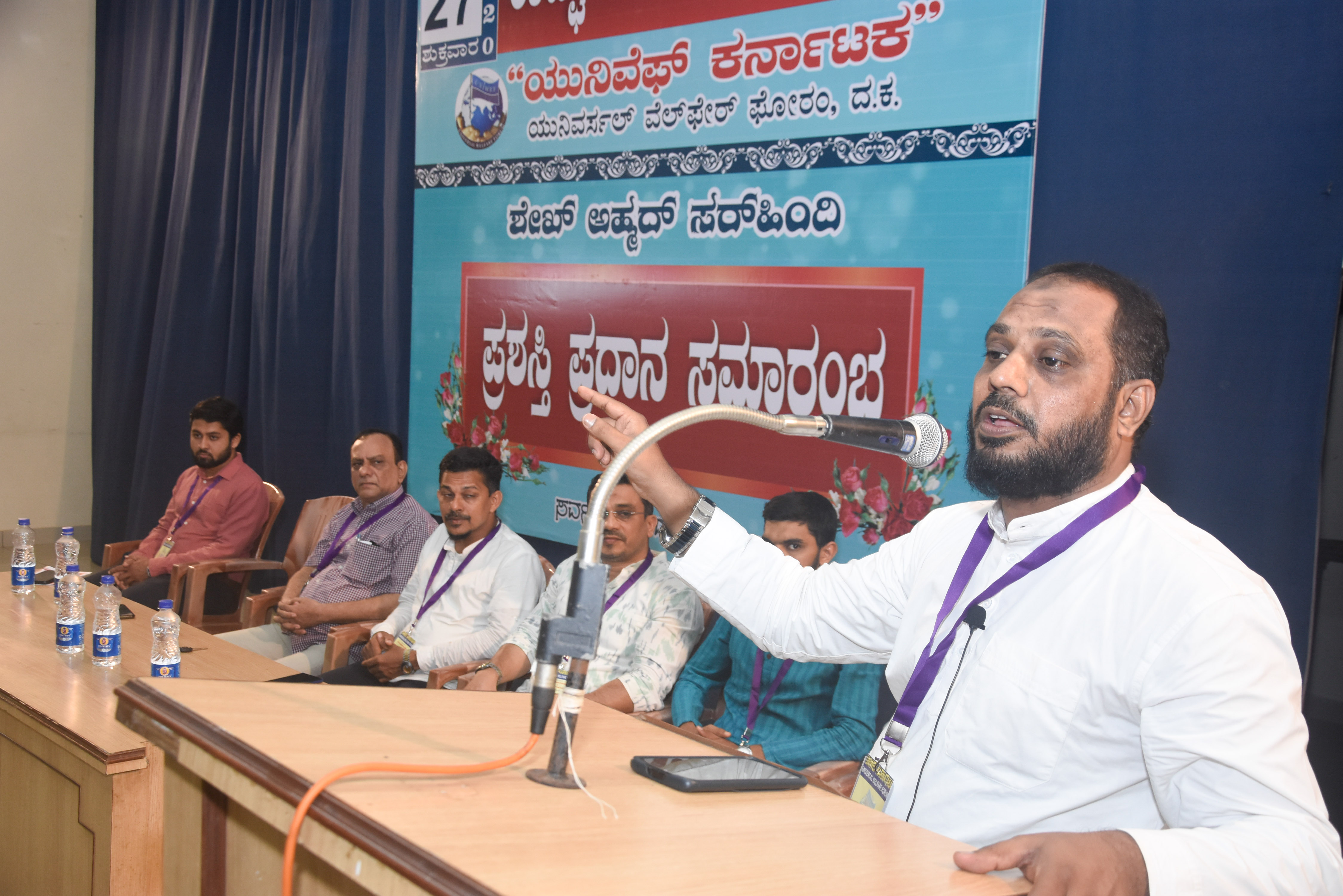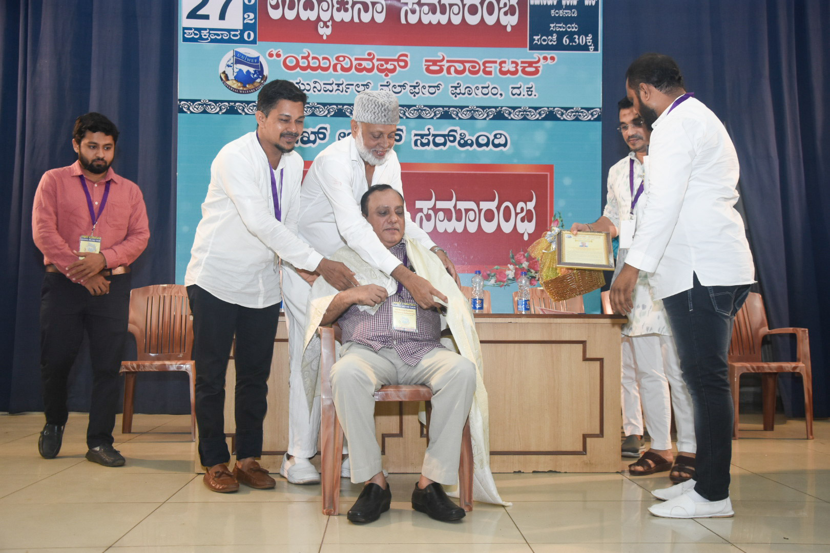 ಮಂಗಳೂರು, ನ.27: ‘ಅರಿಯಿರಿ ಮನುಕುಲದ ಪ್ರವಾದಿಯನ್ನು’ ಪ್ರವಾದಿ ಮುಹಮ್ಮದ್ರ ಸಂದೇಶ ಪ್ರಚಾರ ಅಭಿಯಾನಕ್ಕೆ ಯುನಿವೆಫ್ ಕರ್ನಾಟಕದ ಅಧ್ಯಕ್ಷ ರಫೀಉದ್ದೀನ್ ಕುದ್ರೋಳಿ ಚಾಲನೆ ನೀಡಿದರು. ಇದೇ ಸಂದರ್ಭ ಶೇಖ್ ಅಹ್ಮದ್ ಸರ್ ಪ್ರಶಸ್ತಿಯನ್ನು ಎಡಪದವಿನ ಐಡಿಯಲ್ ಸ್ಕೂಲ್ ಅಧ್ಯಕ್ಷ ವೈ.ಮುಹಮ್ಮದ್ ಬ್ಯಾರಿ ಪ್ರದಾನಿಸಲಾಯಿತು.