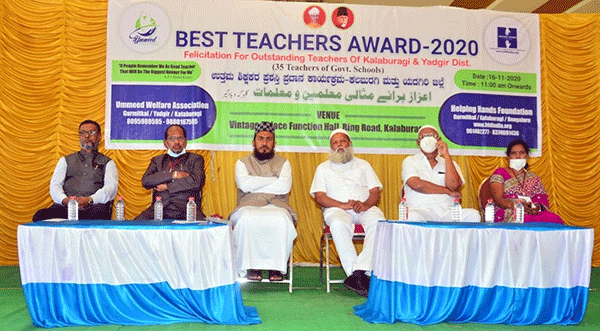 ಯಾದಗಿರಿ ಜಿಲ್ಲೆಯ ಗುರುಮಠದಕಲ್ನ ಉಮ್ಮೀದ್ ವೆಲ್ಫೇರ್ ಅಸೋಸಿಯೇಶನ್ ಮತ್ತು ಹೆಲ್ಪಿಂಗ್ ಹ್ಯಾಂಡ್ಸ್ ಫೌಂಡೇಶನ್ ವತಿಯಿಂದ ಆಯೋಜಿಸಿದ್ದ ಕಾರ್ಯಕ್ರಮದಲ್ಲಿ ಉಭಯ ಜಿಲ್ಲೆಗಳ ಸರಕಾರಿ ಶಾಲೆಗಳ 37 ಶಿಕ್ಷಕರನ್ನು ಸನ್ಮಾನಿಸಲಾಯಿತು. ಇದರಲ್ಲಿ ಸರಕಾರಿ ಪ್ರಾಥಮಿಕ ಶಾಲೆಯ 26 ಮತ್ತು ಪ್ರೌಢಶಾಲೆಯ 11 ಶಿಕ್ಷಕರು ಸೇರಿದ್ದರು.
