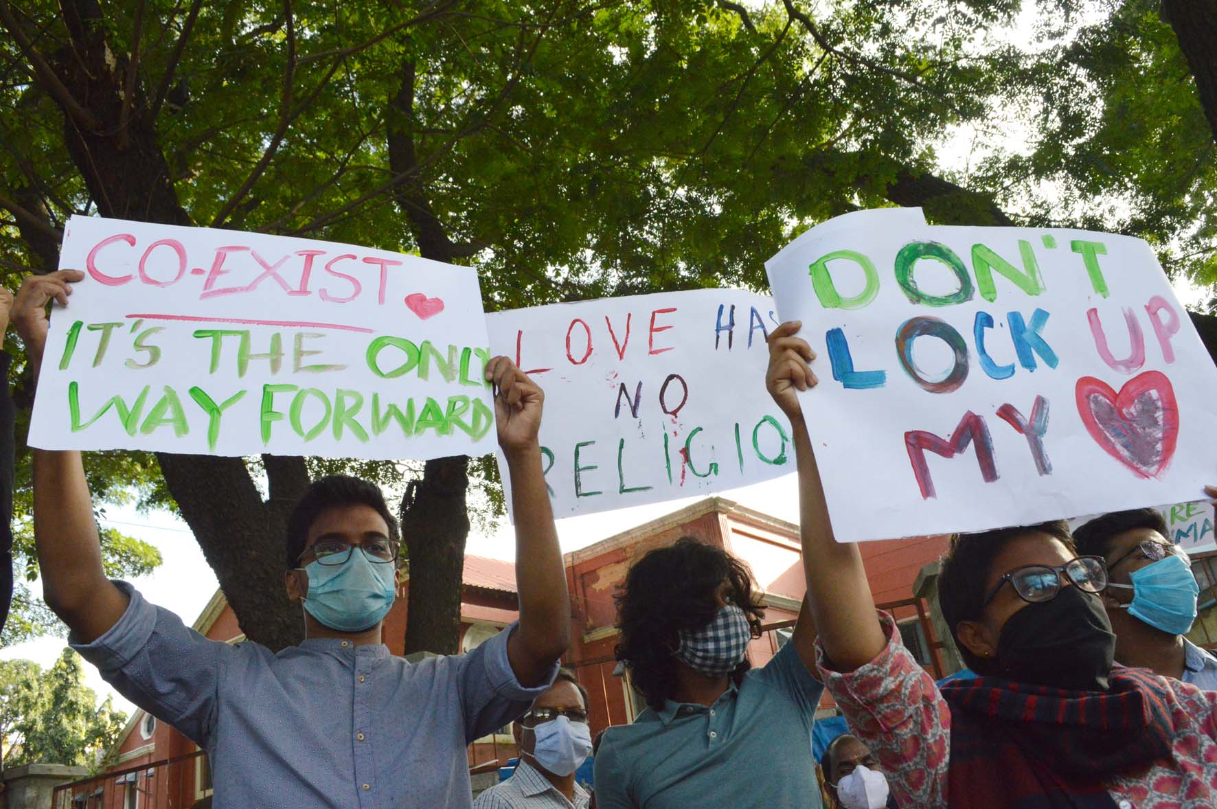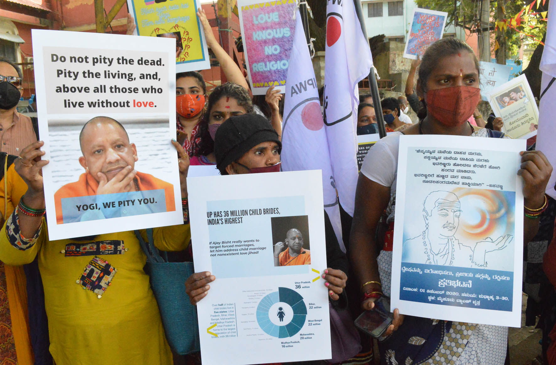 'ಲವ್ ಜಿಹಾದ್' ತಡೆ ಕಾನೂನು ಜಾರಿ ವಿರೋಧಿಸಿ ಪ್ರತಿಭಟನೆ