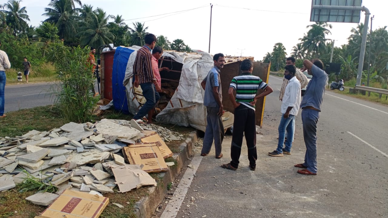 ಸುರತ್ಕಲ್ ಸಮೀಪದ ಕುಳಾಯಿ ಮನದೀಪ್ ಮಾರ್ಬಲ್ಸ್ ಶೋರೂಮ್ ನಿಂದ ಮಾರ್ಬಲ್ಸ್ ಹೇರಿಕೊಂಡು ಬರುತ್ತಿದ್ದ ಟೆಂಪೋ ಬಪ್ಪನಾಡು ಸೇತುವೆ ಬಳಿಯಲ್ಲಿ ಟಯರ್ ಸ್ಪೋಟಗೊಂಡು ಪಲ್ಟಿಯಾಗಿದೆ.