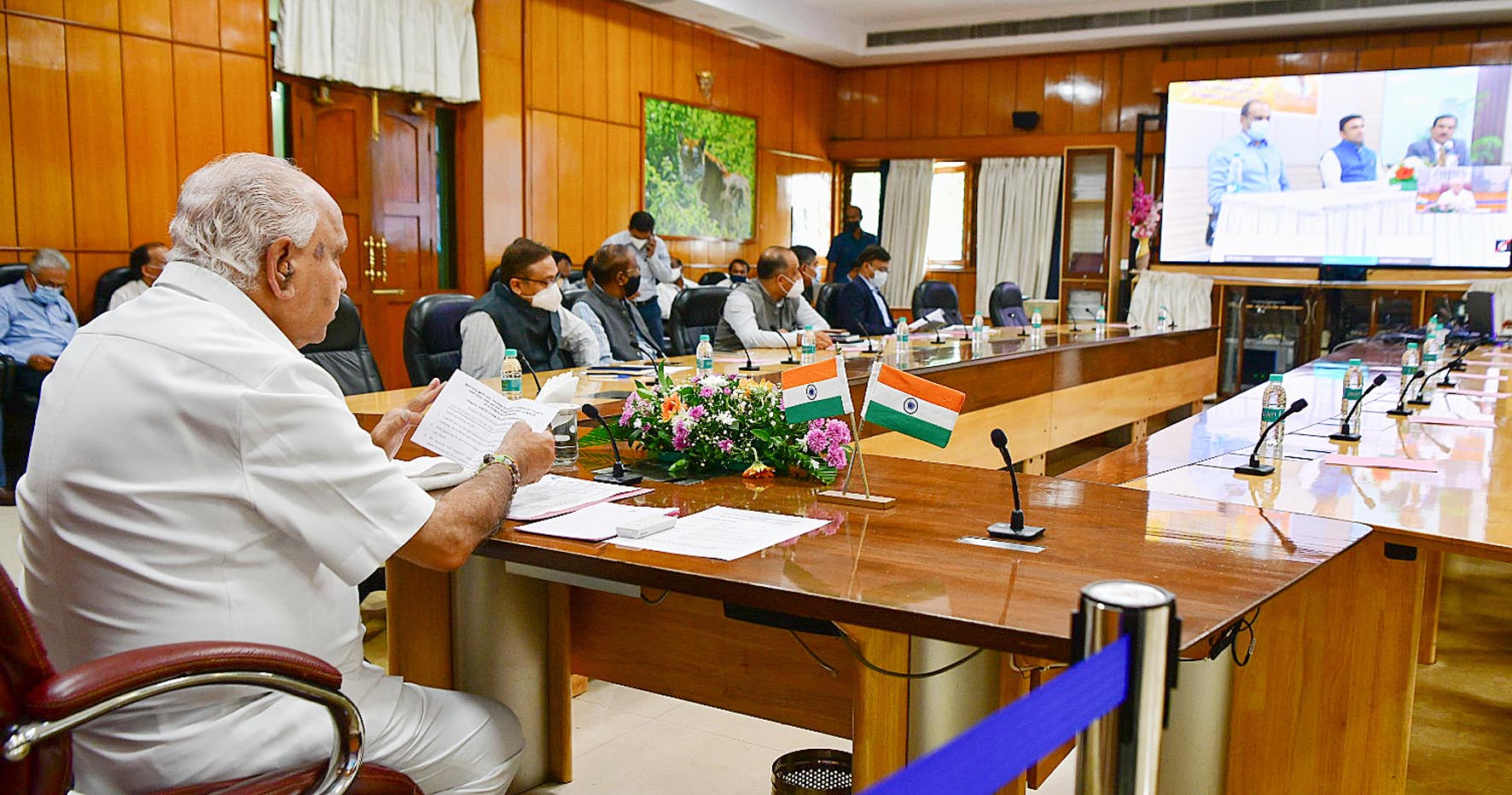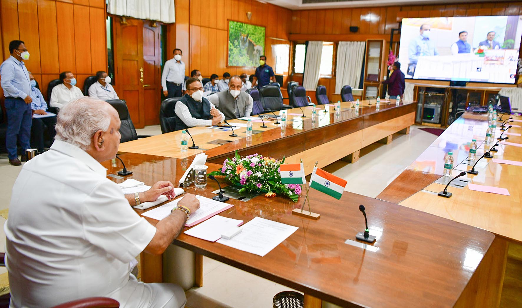 ಬುಧವಾರ ಸಿಎಂ ಗೃಹ ಕಚೇರಿ ಕೃಷ್ಣಾದಲ್ಲಿ ವೈದೇಹಿ ವೈದ್ಯಕೀಯ ವಿಜ್ಞಾನ ಮತ್ತು ಸಂಶೋಧನಾ ಸಂಸ್ಥೆಯಲ್ಲಿ ಭಾರತ್ ಬಯೋಟೆಕ್ ಸಹಯೋಗದಲ್ಲಿ ಕೊವ್ಯಾಕ್ಸಿನ್ ಕೋವಿಡ್ ಲಸಿಕೆಯ 3ನೆ ಹಂತದ ಕ್ಲಿನಿಕಲ್ ಪ್ರಯೋಗಕ್ಕೆ ಮುಖ್ಯಮಂತ್ರಿ ಯಡಿಯೂರಪ್ಪ ಅವರು ಚಾಲನೆ ನೀಡಿದರು.