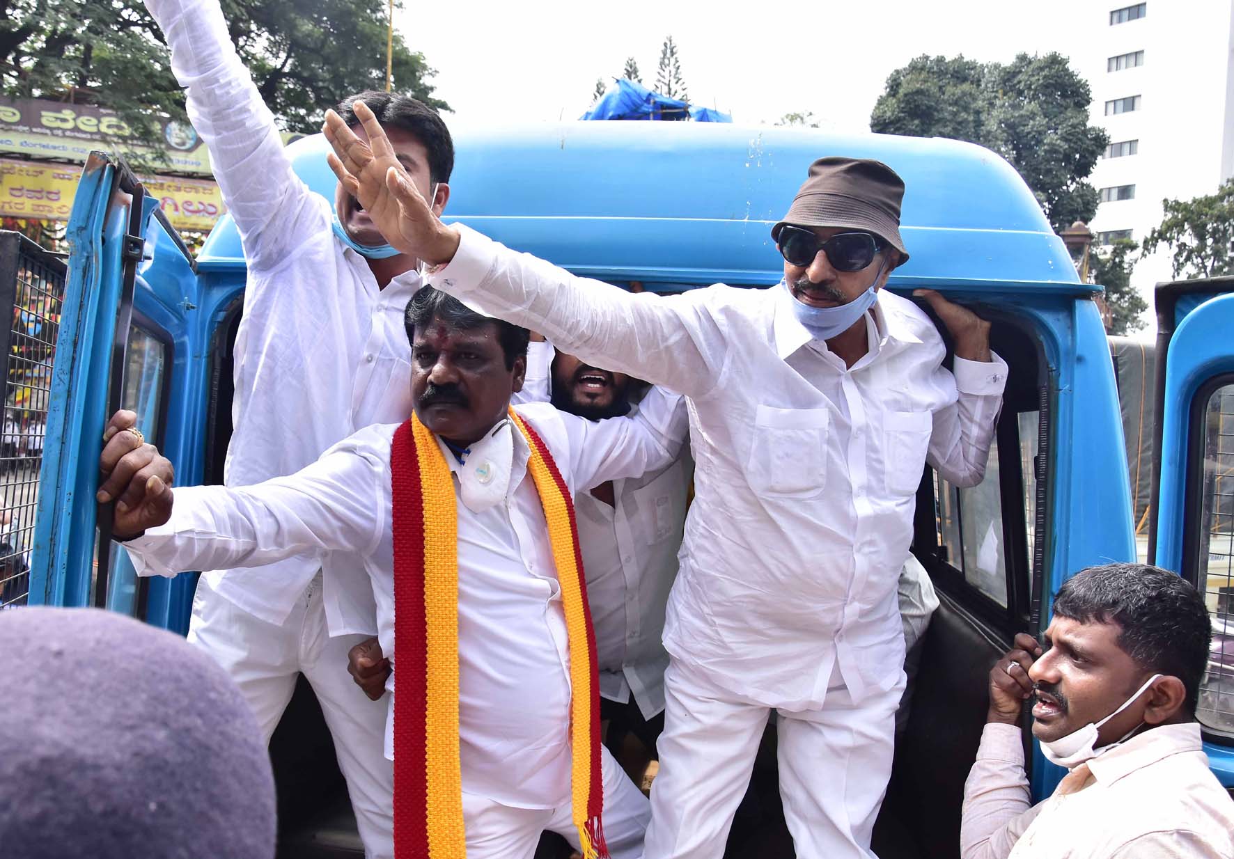ನಗರದ ಮೈಸೂರು ಬ್ಯಾಂಕ್ ವೃತ್ತದಲ್ಲಿ ಜಮಾಯಿಸಿದ ನೂರಾರು ಕನ್ನಡ ಪರ ಸಂಘಟನೆಗಳ ಕಾರ್ಯಕರ್ತರು ಆದೇಶ ಪ್ರತಿಗೆ ಬೆಂಕಿ ಹಚ್ಚಿ ಸರಕಾರ ಕೂಡಲೇ ನಿಗಮವನ್ನು ಹಿಂಪಡೆಯಬೇಕು ಎಂದು ಒತ್ತಾಯಿಸಿದರು. ಈ ವೇಳೆ ಪೊಲೀಸರು ವಾಟಾಳ್ ನಾಗರಾಜ್, ಸಾ.ರಾ.ಗೋವಿಂದು ಸೇರಿದಂತೆ ಹಲವರನ್ನು ಬಂಧಿಸಿದರು.