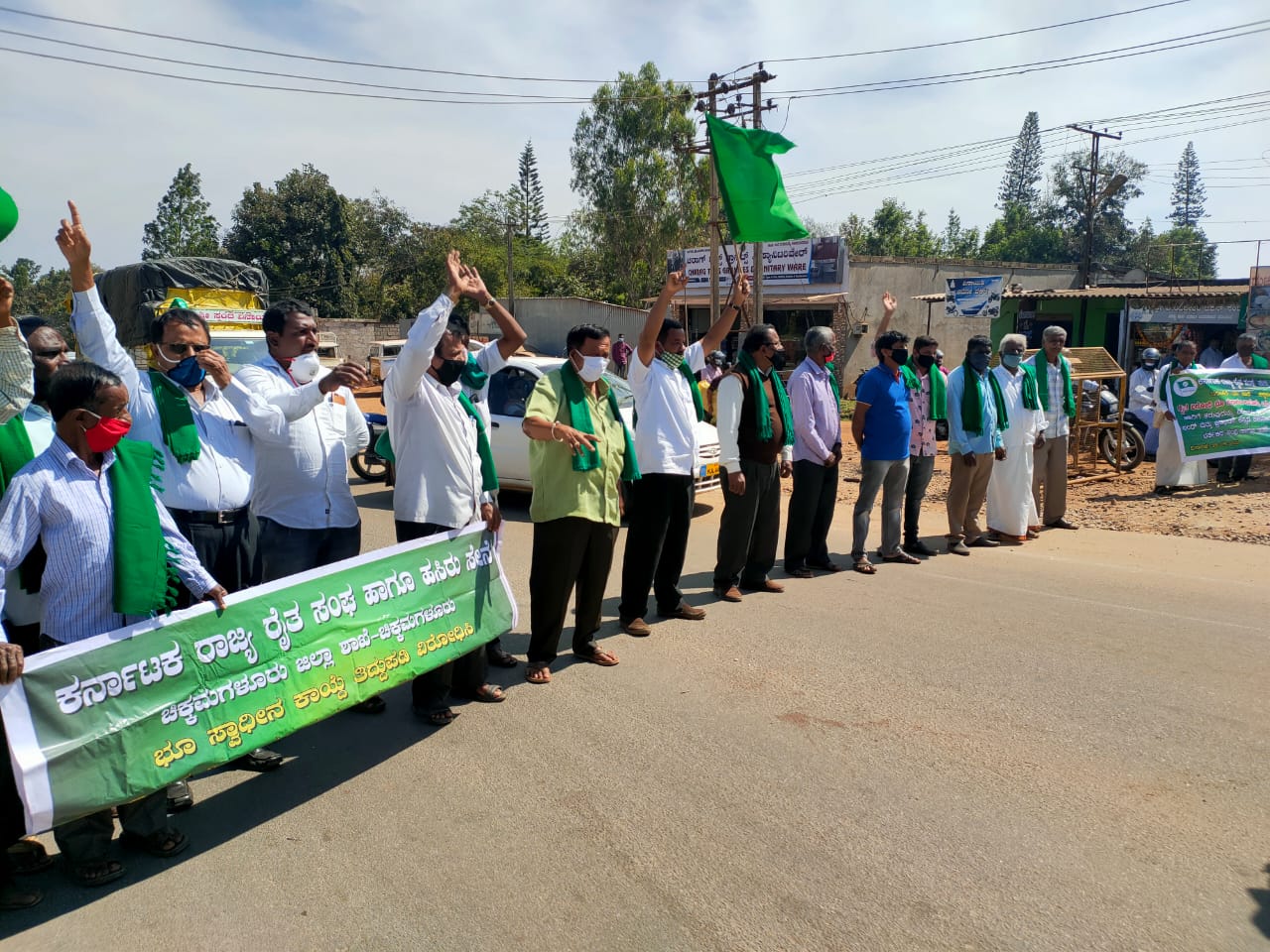 ರೈತರ ಹೋರಾಟ ಹತ್ತಿಕ್ಕಲು ಯತ್ನ ಆರೋಪ: ಕೇಂದ್ರದ ವಿರುದ್ಧ ರೈತ ಸಂಘದಿಂದ ರಸ್ತೆ ತಡೆದು ಪ್ರತಿಭಟನೆ