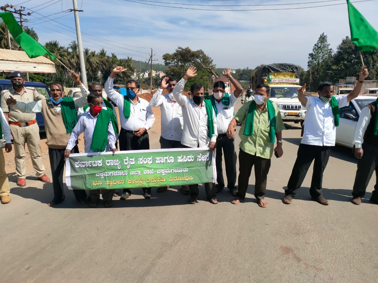 ಚಿಕ್ಕಮಗಳೂರು, ಡಿ.2: ಕೃಷಿ ಮಸೂದೆಗಳ ತಿದ್ದುಪಡಿ ಹಿಂಪಡೆಯಲು ಆಗ್ರಹಿಸಿ ದಿಲ್ಲಿಯಲ್ಲಿ ಲಕ್ಷಾಂತರ ಸಂಖ್ಯೆಯ ರೈತರು ನಡೆಸುತ್ತಿರುವ ಹೋರಾಟವನ್ನು ಹತ್ತಿಕ್ಕಲು ಕೇಂದ್ರ ಸರಕಾರ ಅರೆಸೇನಾ ಪಡೆಗಳನ್ನು ಬಳಸಿಕೊಂಡಿರುವುದನ್ನು ವಿರೋಧಿಸಿದ ಹಾಗೂ ಕೃಷಿ ಮಸೂದೆಗಳ ತಿದ್ದುಪಡಿಗೆ ಆಗ್ರಹಿಸಿ ರೈತ ಸಂಘಟನೆಗಳ ಮುಖಂಡರು, ಕಾರ್ಯಕರ್ತರು ಬುಧವಾರ ನಗರದ ಎಐಟಿ ಸರ್ಕಲ್ನಲ್ಲಿ ಕೆಲ ಹೊತ್ತು ರಸ್ತೆ ತಡೆ ನಡೆಸಿ ಧರಣಿ ನಡೆಸಿದರು.