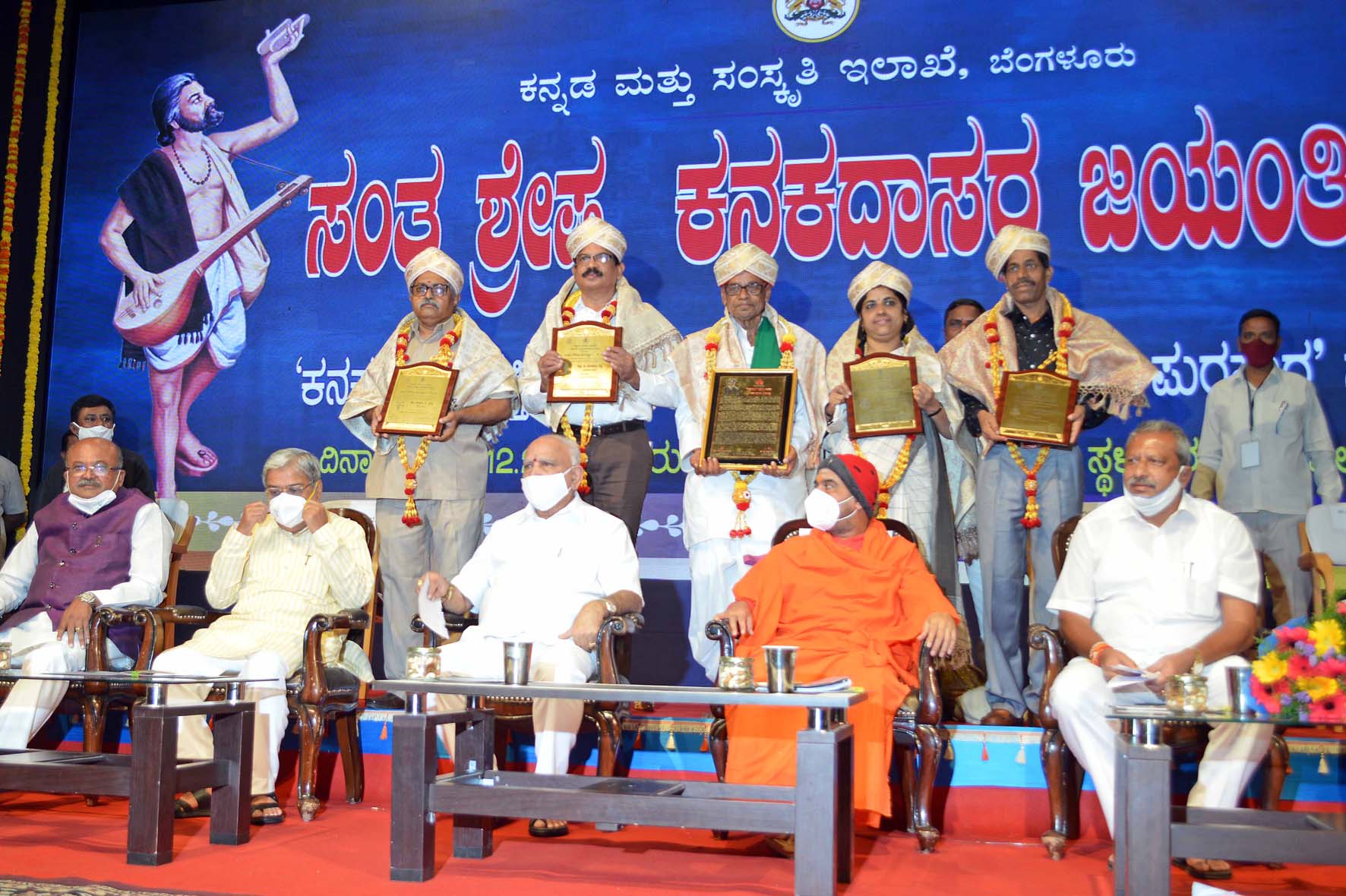 ಗುರುವಾರ ಕನ್ನಡ ಮತ್ತು ಸಂಸ್ಕೃತಿ ಇಲಾಖೆ ವತಿಯಿಂದ ನಗರದ ರವೀಂದ್ರ ಕಲಾಕ್ಷೇತ್ರದಲ್ಲಿ ಆಯೋಜಿಸಿದ್ದ ಕನಕ ಜಯಂತಿ ಕಾರ್ಯಕ್ರಮದ ಉದ್ಘಾಟನೆ ಹಾಗೂ ಕನಕಶ್ರೀ, ಕನಕ ಗೌರವ ಪುರಸ್ಕಾರ, ಕನಕ ಯುವ ಪುರಸ್ಕಾರ ಪ್ರಶಸ್ತಿ ಪ್ರದಾನ ಮಾಡಿ ಮಾತನಾಡಿದ ಅವರು, ಕನಕದಾಸರ ಸಮಾಜಮುಖಿ ನಿರ್ಮಾಣ, ಜಾತ್ಯತೀತತೆಯ ಪರಿಕಲ್ಪನೆಯೇ ನಮ್ಮ ಸರಕಾರದ ಆಶಯವಾಗಿದೆ. ಈ ದೆಸೆಯಲ್ಲಿ ಕಾರ್ಯೋನ್ಮುಖವಾಗಿದ್ದೇವೆಂದು ತಿಳಿಸಿದ್ದಾರೆ.