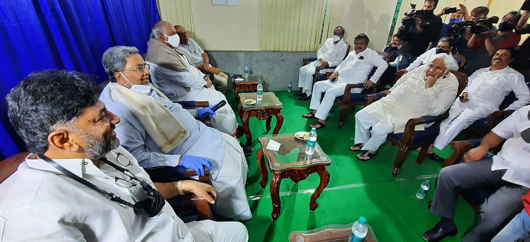 ರವಿವಾರ ವಿರೋಧ ಪಕ್ಷದ ನಾಯಕ ಸಿದ್ದರಾಮಯ್ಯ ಅಧ್ಯಕ್ಷತೆಯಲ್ಲಿ ರಾಜ್ಯಸಭಾ ಸದಸ್ಯ ಮಲ್ಲಿಕಾರ್ಜುನ ಖರ್ಗೆ, ಕೆಪಿಸಿಸಿ ಅಧ್ಯಕ್ಷ ಡಿ.ಕೆ. ಶಿವಕುಮಾರ್, ಮುಖಂಡರಾದ ಕೆ.ಆರ್. ರಮೇಶ್ ಕುಮಾರ್, ಎಚ್.ಕೆ.ಪಾಟೀಲ್, ಕೆಪಿಸಿಸಿ ಕಾರ್ಯಾಧ್ಯಕ್ಷರಾದ ಸಲೀಂ ಅಹ್ಮದ್, ಸತೀಶ್ ಜಾರಕಿಹೊಳಿ, ಈಶ್ವರ್ ಖಂಡ್ರೆ, ಎಂ.ಬಿ.ಪಾಟೀಲ್ ಸೇರಿದಂತೆ ಹಿರಿಯ ಮುಖಂಡರ ಉಪಸ್ಥಿತಿಯಲ್ಲಿ ವಿಧಾನ ಮಂಡಲದಲ್ಲಿ ಅನುಸರಿಸಬೇಕಾದ ಕಾರ್ಯತಂತ್ರಗಳ ಕುರಿತು ಚರ್ಚಿಸಲಾಯಿತು.