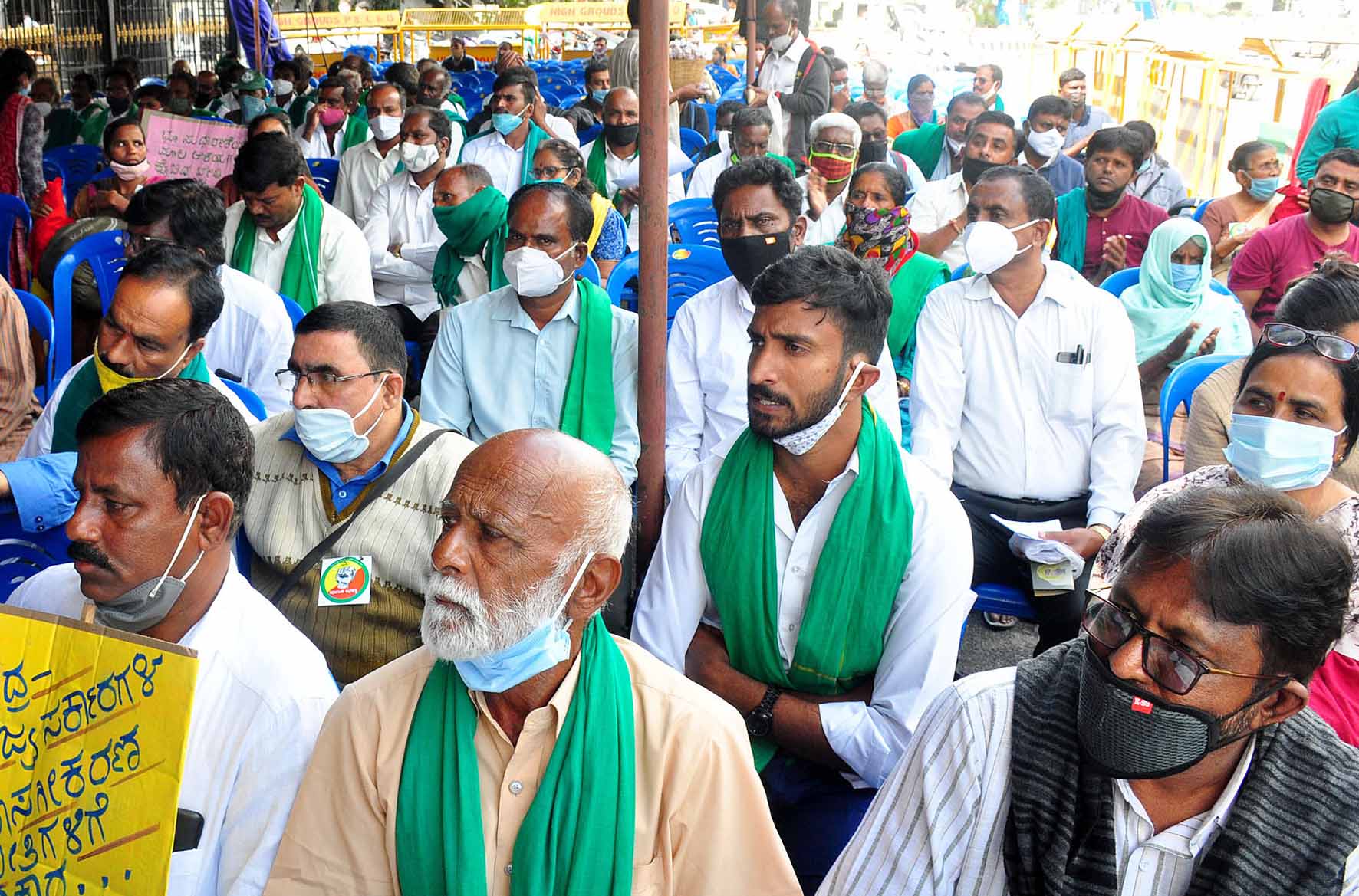 ಸೋಮವಾರ ನಗರದ ಮೌರ್ಯ ವೃತ್ತದ ಗಾಂಧಿ ಪ್ರತಿಮೆ ಮುಂಭಾಗ ರೈತ, ದಲಿತ, ಕಾರ್ಮಿಕ, ಜನಪರ ಸಂಘಟನೆಗಳ ಐಕ್ಯ ಹೋರಾಟ ಸಮಿತಿ ನೇತೃತ್ವದಲ್ಲಿ ರಾಜ್ಯ ಮತ್ತು ಕೇಂದ್ರದ ಬಿಜೆಪಿ ಸರಕಾರಗಳ ರೈತ, ದಲಿತ, ಕಾರ್ಮಿಕ ಕಾಯ್ದೆ, ಸುಗ್ರಿವಾಜ್ಞೆಗಳ ವಿರುದ್ಧ ನಡೆಸಿದ ಅನಿರ್ದಿಷ್ಟಾವಧಿ ಪ್ರತಿಭಟನೆಯನ್ನುದ್ದೇಶಿಸಿ ಅವರು ಮಾತನಾಡಿದರು.