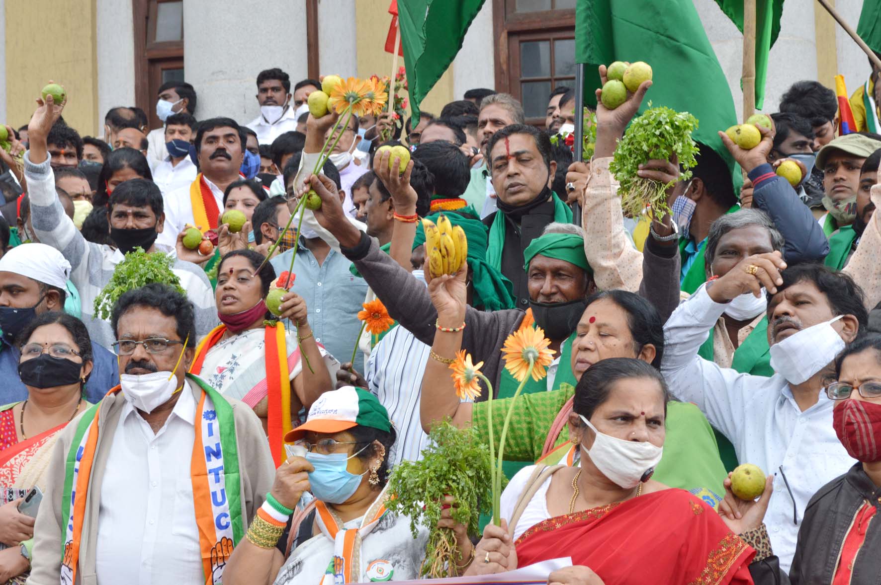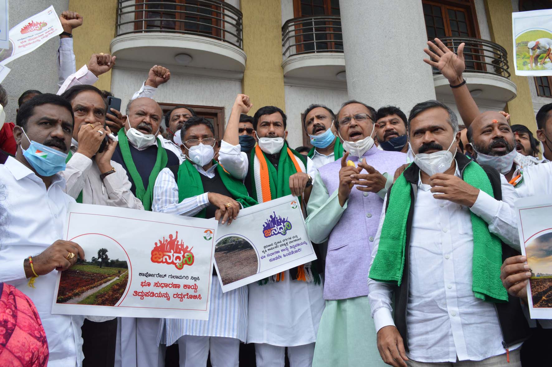 ಜನಸಂಖ್ಯೆಯಲ್ಲಿ ಶೇ.78ರಷ್ಟು ರೈತರಿದ್ದಾರೆ. ಅವರಿಗೆ ಮರಣಶಾಸನವಾಗಿರುವ ಕಾಯ್ದೆಗಳನ್ನು ಕೇಂದ್ರ ಸರಕಾರ ತಂದಿದೆ. ಅನ್ನದಾತರ ಬಾಯಿಗೆ ಮಣ್ಣು ಸುರಿಯುವ ಪ್ರಯತ್ನ ಇದಾಗಿದೆ. ಈ ಕರಾಳ ಕಾಯ್ದೆ ರೂಪಿಸುವಾಗ ರೈತ ಮುಖಂಡರು, ಕಾಂಗ್ರೆಸ್ ಅಥವಾ ಇತರೆ ಯಾವ ಪಕ್ಷದವರ ಸಲಹೆಯನ್ನೂ ಪಡೆದಿಲ್ಲ. ಕೃಷಿ ಮಾರುಕಟ್ಟೆಗಳ ಮೇಲೆ ಖಾಸಗಿ ಕಂಪೆನಿಗಳ ಕಣ್ಣು ಬಿದ್ದಿದ್ದು, ರೈತರ ಮೇಲೆ ಕಾಯ್ದೆಗಳನ್ನು ಹೇರಿ ಆ ಕಂಪನಿಗಳ ಗುಲಾಮರನ್ನಾಗಿ ಮಾಡಲಾಗುತ್ತಿದೆ. ರೈತರ ಸ್ವಾವಲಂಬಿ ಬದುಕಿಗಾಗಿ ನಡೆಯುತ್ತಿರುವ ಹೋರಾಟಕ್ಕೆ ಕಾಂಗ್ರೆಸ್ ಬೆಂಬಲ ಇದೆ. ಸದನದ ಒಳಗೂ ಹೋರಾಡುತ್ತೇವೆ ಎಂದು ಸ್ಪಷ್ಟಪಡಿಸಿದರು.