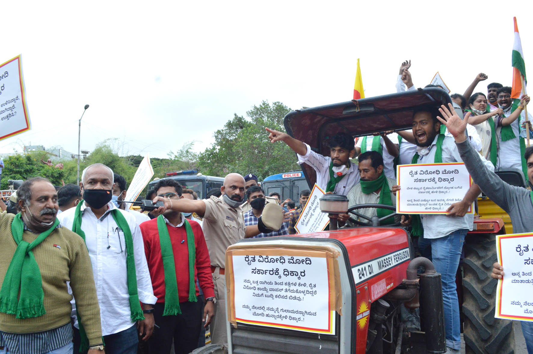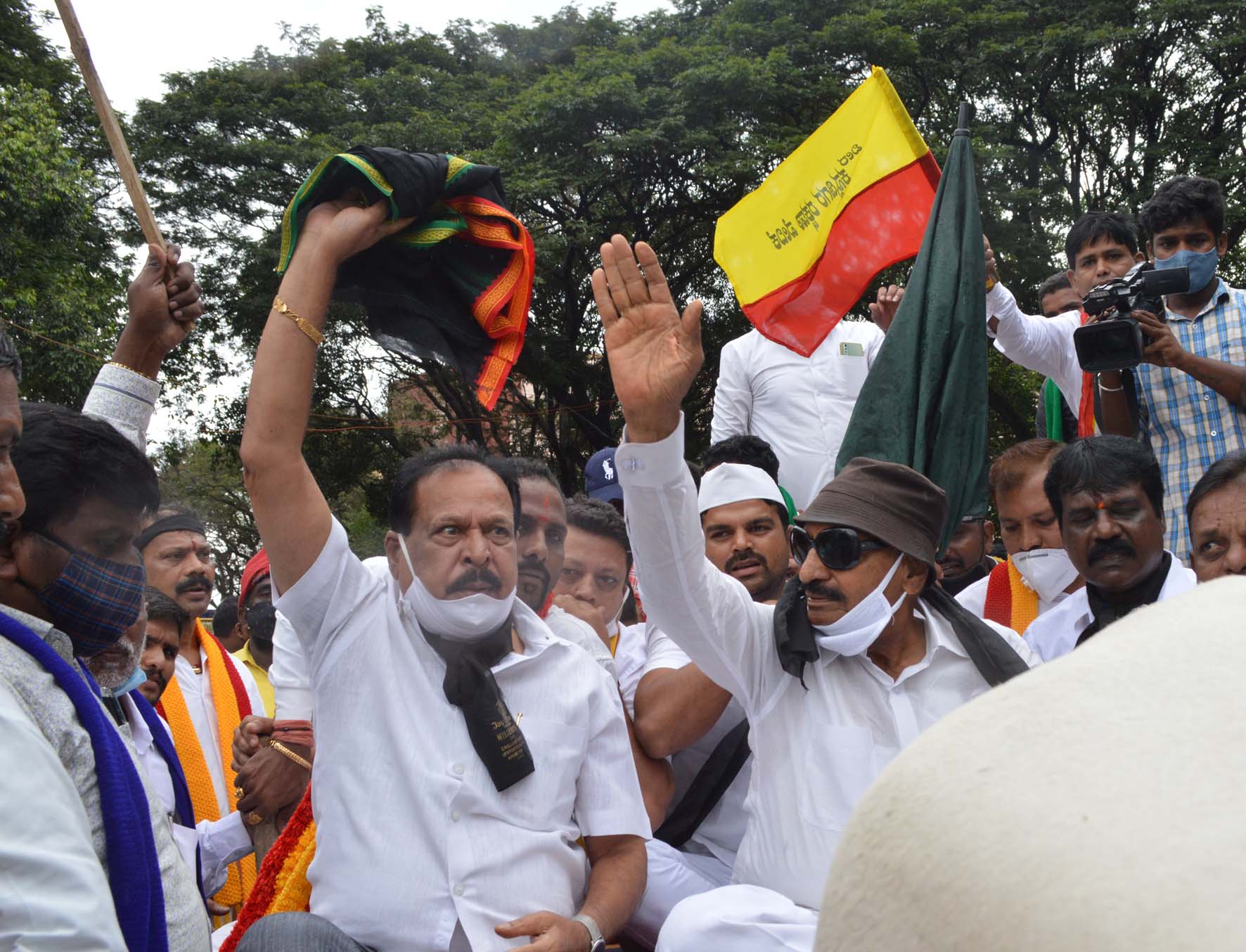 ಅರೆಬೆತ್ತಲೆ ಪ್ರತಿಭಟನೆ: ವಿಧಾನಸೌಧದ ಕಡೆಗೆ ರೈತ ಮುಖಂಡರ ಗುಂಪೊಂದು ನುಗ್ಗಲು ಹೊರಟಾಗ ಪೊಲೀಸರು ತಡೆದರು. ಈ ವೇಳೆ ರೈತರು ಅರೆಬೆತ್ತಲೆಯಾಗಿ ರಸ್ತೆ ಮೇಲೆ ಮಲಗಿ ಪ್ರತಿಭಟಿಸಿದರು. ಈ ವೇಳೆ ಪೊಲೀಸರು ಹಾಗೂ ರೈತರ ನಡುವೆ ವಾಗ್ವಾದ ನಡೆಯಿತು. ರೈತರೊಬ್ಬರು ಅಸ್ವಸ್ಥರಾಗಿ ಕುಸಿದು ಬಿದ್ದು, ತದನಂತರ ಚೇತರಿಸಿಕೊಂಡರು.