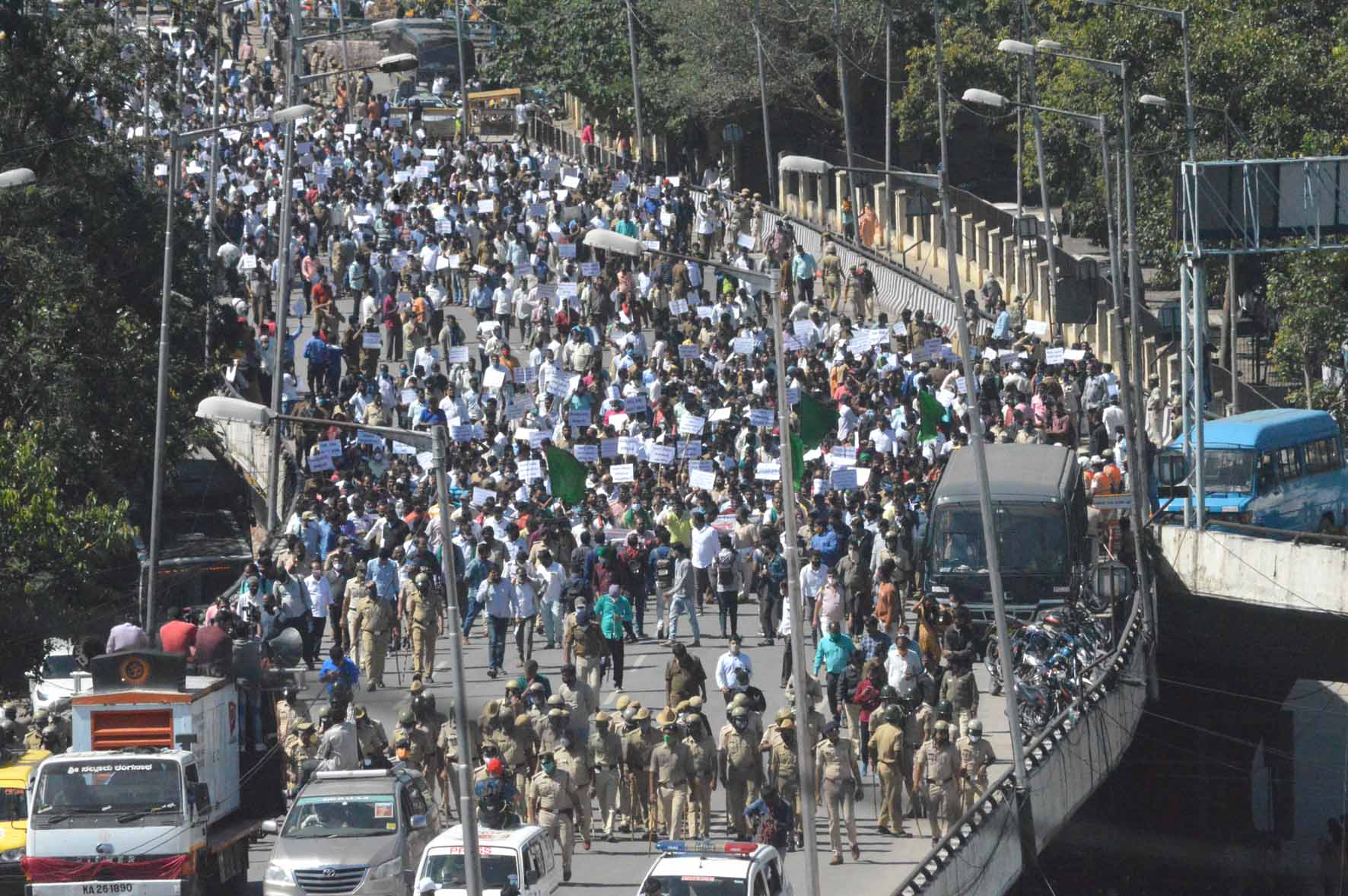 ರೈತರ ಮತ್ತು ಸಾರಿಗೆ ನೌಕರರು ವಿಧಾನಸೌಧ ಮುತ್ತಿಗೆಗೆ ಕರೆ ನೀಡಿದ್ದ ಹಿನ್ನೆಲೆ ನಗರದೆಲ್ಲೆಡೆ ಪೊಲೀಸ್ ಭದ್ರತೆಯನ್ನು ಹೆಚ್ಚಿಸಲಾಗಿತ್ತು. ಇಲ್ಲಿನ ವಿಧಾನಸೌಧ, ರಾಜಭವನ, ಮುಖ್ಯಮಂತ್ರಿಗಳ ನಿವಾಸದ ವ್ಯಾಪ್ತಿಯಲ್ಲಿ ಅಧಿಕ ಸಂಖ್ಯೆಯಲ್ಲಿ ಪೊಲೀಸರನ್ನು ನಿಯೋಜಿಸಲಾಗಿತ್ತು.