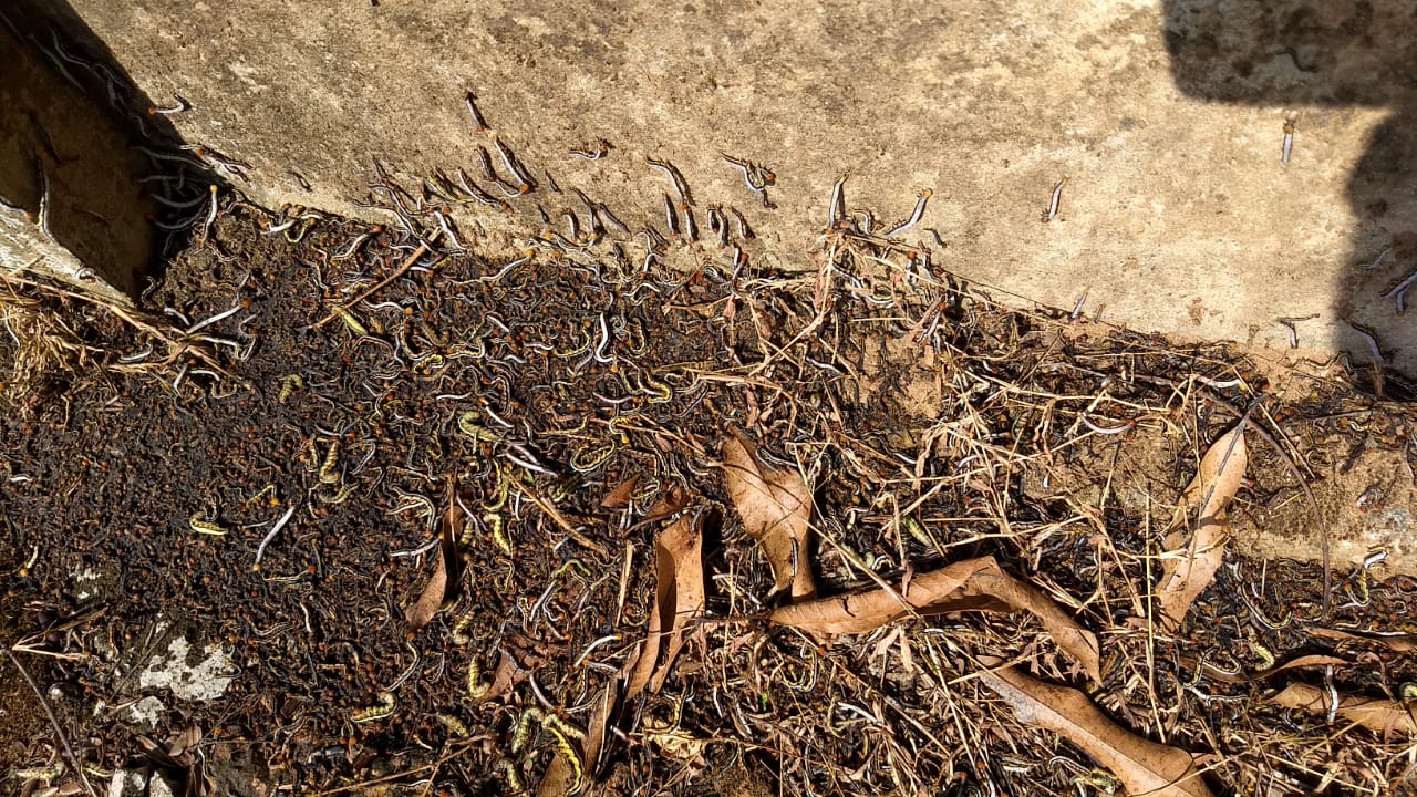 ಡಿ.12ರಂದು ಸಾವಿರಾರು ಸಂಖ್ಯೆಯಲ್ಲಿ ಕಂಡು ಬಂದ ಈ ಹುಳಗಳ ಸಂಖ್ಯೆ ಡಿ.13ರಂದು ಇನ್ನಷ್ಟು ಹೆಚ್ಚಿ ಲಕ್ಷಕ್ಕೂ ಮೀರಿತ್ತು. ಈ ಬಗ್ಗೆ ಆತಂಕ ಗೊಂಡ ಶಾಲಾ ಶಿಕ್ಷಕರು ಹಾಗೂ ಸ್ಥಳೀಯರು ಈ ಬಗ್ಗೆ ಸ್ಥಳೀಯ ಗ್ರಾಪಂಗೆ ಮಾಹಿತಿ ನೀಡಿದರು. ಅದರಂತೆ ಗ್ರಾಪಂನವರು ಡಿ.14ರಂದು ಸ್ಥಳಕ್ಕೆ ಆಗಮಿಸಿ ಪರಿಶೀನೆ ನಡೆಸಿದರು.