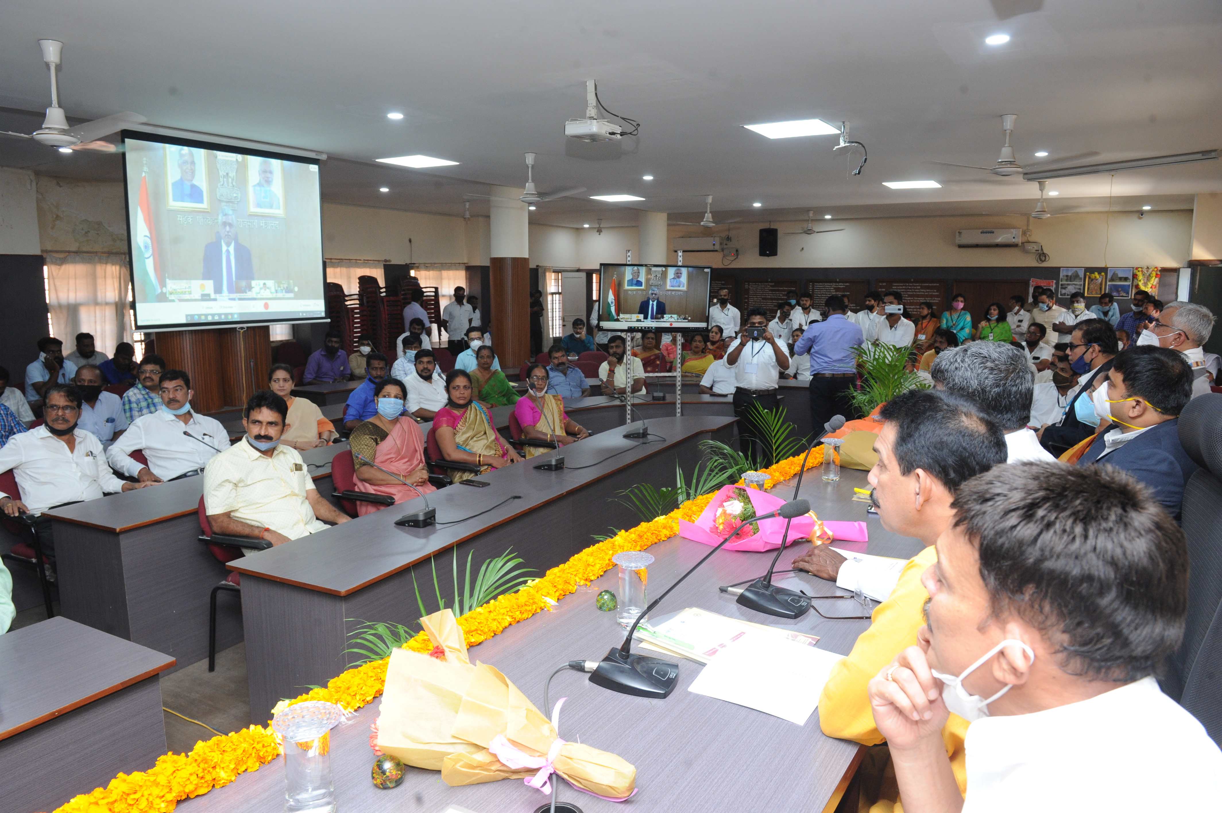 ಜಿಲ್ಲಾಧಿಕಾರಿ ಕಚೇರಿಯಲ್ಲಿ ಸಂಸದ ನಳಿನ್ ಕುಮಾರ್ ಕಟೀಲು ಅಧ್ಯಕ್ಷತೆಯಲ್ಲಿ ವೀಡಿಯೋ ಕಾನ್ಫೆರೆನ್ಸ್ಗೆ ವ್ಯವಸ್ಥೆ ಮಾಡಲಾಗಿತ್ತು.