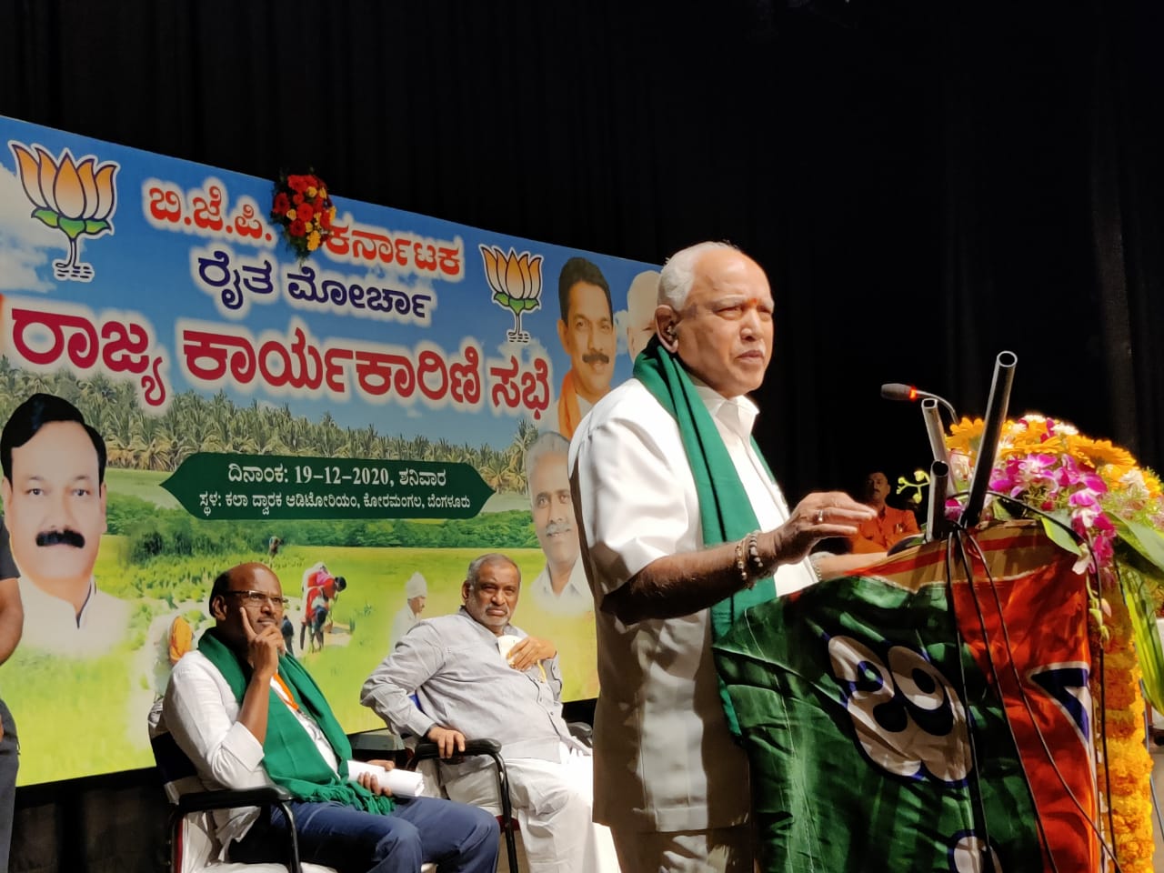 ಶನಿವಾರ ಕೋರಮಂಗಲದ ಕಲಾದ್ವಾರಕ ಸಭಾಂಗಣದಲ್ಲಿ ನಡೆದ "ರಾಜ್ಯ ರೈತ ಮೋರ್ಚಾ ಕಾರ್ಯಕಾರಿಣಿ"ಯಲ್ಲಿ ಸಮಾರೋಪ ಭಾಷಣ ಮಾಡಿದ ಅವರು, ದಿಲ್ಲಿಯಲ್ಲಿ ರೈತರ ಹೆಸರಿನಲ್ಲಿ ಸತ್ಯಾಗ್ರಹ ನಡೆಸುತ್ತಿರುವವರು ಪ್ರಧಾನಿಯವರು ಕೈಮುಗಿದು ಕೇಳಿದರೂ ಮಾತುಕತೆಗೆ ಬರುತ್ತಿಲ್ಲ. ಇದರ ಹಿಂದೆ ಕಾಂಗ್ರೆಸ್ ಪಕ್ಷದ ಪಿತೂರಿ ಇರುವುದೇ ಪ್ರತಿಭಟನೆಗೆ ಕಾರಣ ಎಂದರು.