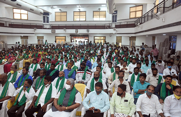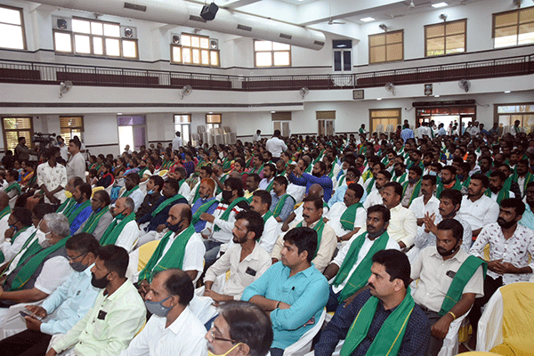 ಕಾರ್ಯಕ್ರಮದಲ್ಲಿ ವೇದಿಕೆಯಲ್ಲಿ ಕುಳಿತವರು ಮಾತ್ರವಲ್ಲದೆ, ಸಮಾರಂಭದಲ್ಲಿ ಭಾಗವಹಿಸಿದ್ದವರಿಗೆಲ್ಲಾ ಹಸಿರು ಶಾಲು ನೀಡಲಾಗಿತ್ತು. ಎಲ್ಲರೂ ಹಸಿರು ಶಾಲು ಹೆಗಲಿಗೆ ಹಾಕಿಕೊಂಡಿರುವಂತೆಯೇ ಸಭೆಯು ರೈತ ಗೀತೆಯೊಂದಿಗೆ ಆರಂಭಗೊಂಡಿತು.