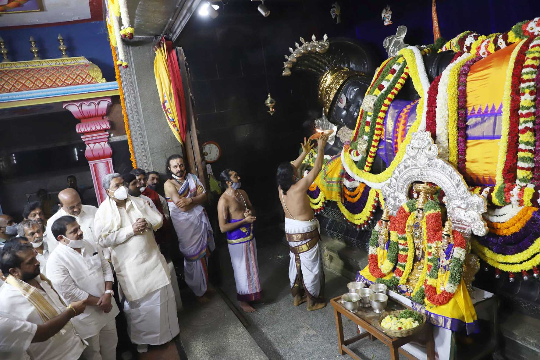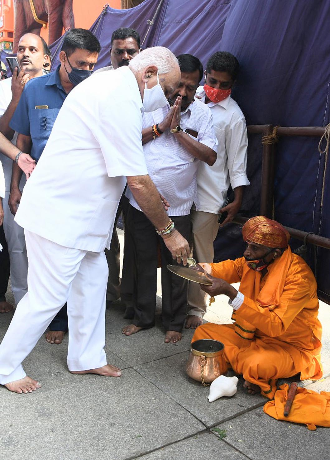 ಶುಕ್ರವಾರ ಬೆಳಗ್ಗೆ ಮುಖ್ಯಮಂತ್ರಿ ಬಿ.ಎಸ್.ಯಡಿಯೂರಪ್ಪನವರು, ಉಪಮುಖ್ಯಮಂತ್ರಿ ಗೋವಿಂದ ಎಂ.ಕಾರಜೋಳ ಅವರೊಂದಿಗೆ ಇಲ್ಲಿನ ಮಹಾಲಕ್ಷ್ಮಿ ಲೇಔಟ್ನಲ್ಲಿ ಇರುವ ಶ್ರೀ ಶ್ರೀನಿವಾಸ ದೇಗುಲಕ್ಕೆ ಖುದ್ದು ಭೇಟಿ ನೀಡಿ, ವಿಶೇಷ ಪೂಜೆ ಸಲ್ಲಿಸಿ ದೇವರ ದರ್ಶನ ಪಡೆದರು.