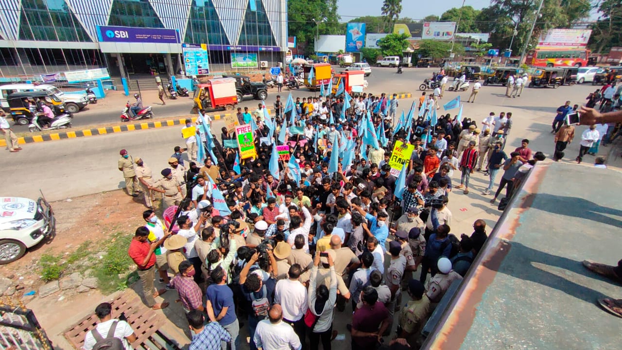 ಡಿಸಿ ಕಚೇರಿಯ ಮುಂದೆ ಜಮಾಯಿಸಿದ ಕಾರ್ಯಕರ್ತರು ಕೇಂದ್ರ ಸರಕಾರದ ವಿರುದ್ಧ ಘೋಷಣೆ ಕೂಗಿದರು. ಅಲ್ಲದೆ ಡಿಸಿ ಕಚೇರಿ ದಾಟಿ ಸಂಸದರ ಕಚೇರಿಗೆ ಮುತ್ತಿಗೆ ಹಾಕಲು ಯತ್ನಿಸಿದರು. ಈ ವೇಳೆ ಪೊಲೀಸರು ಪ್ರತಿಭಟನಾಕಾರರ ಪೈಕಿ ನಾಯಕರು ಹಾಗೂ ಹಲವು ಕಾರ್ಯಕರ್ತರನ್ನು ವಶಕ್ಕೆ ಪಡೆದಿದ್ದಾರೆ ಎಂದು ತಿಳಿದುಬಂದಿದೆ.