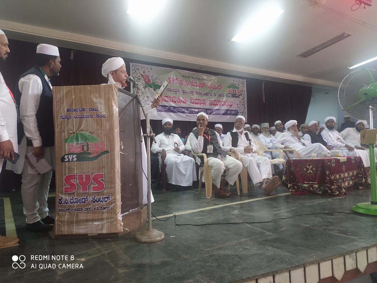 ಅವರು ಎಸ್ ವೈ ಎಸ್ ಕೆ.ಸಿ.ರೋಡ್ ಸೆಂಟರ್ ವತಿಯಿಂದ ಕೋಟೆಕಾರ್ ಹಾಲ್ ನಲ್ಲಿ ನಡೆದ ಸ್ವಾಂತನ ಪ್ರಯುಕ್ತ 9 ನೇ ವರ್ಷದ ಐದು ಜೋಡಿ ಸಾಮೂಹಿಕ ವಿವಾಹ ಕಾರ್ಯಕ್ರಮವನ್ನು ಉದ್ಘಾಟಿಸಿ, ಮಾತನಾಡಿದರು.