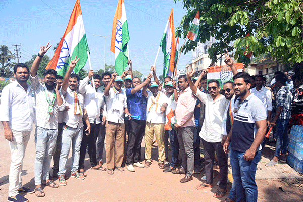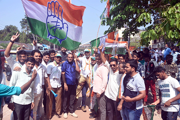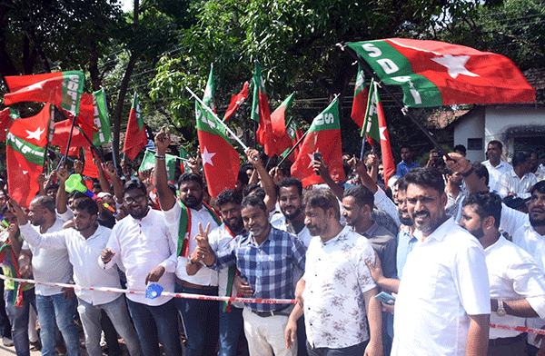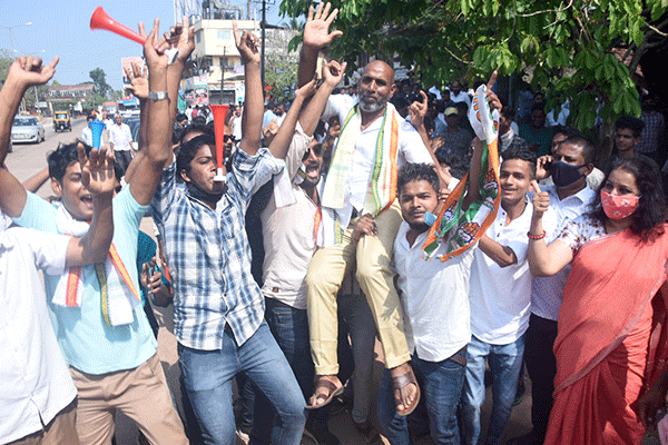 ಮಂಗಳೂರು: ಮತ ಎಣಿಕೆ ಕೇಂದ್ರದ ಎದುರು ಸಂಭ್ರಮಾಚರಣೆ