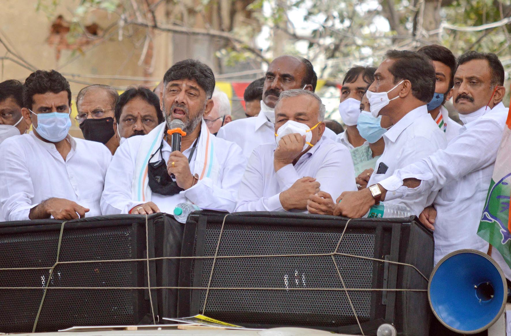 ತದನಂತರ ಪ್ರತಿಭಟನೆಯನ್ನುದ್ದೇಶಿಸಿ ಮಾತನಾಡಿದ ಕೆಪಿಸಿಸಿ ಅಧ್ಯಕ್ಷ ಡಿ.ಕೆ.ಶಿವಕುಮಾರ್, ರಾಜ್ಯದಲ್ಲಿ ತುಘಲಕ್ ಸರಕಾರ ನಡೆಯುತ್ತಿದೆ. ಕೊರೋನ ಸಮಯದಲ್ಲಿ ಸರಕಾರವೇ ಲಾಕ್ಡೌನ್, ಸೀಲ್ಡೌನ್ ಮಾಡಿ ಈಗ ಜನ ಸಾಮಾನ್ಯರ ಮೇಲೆ ತೆರಿಗೆ ಹೊರೆ ಹಾಕುತ್ತಿದೆ ಎಂದು ವಾಗ್ದಾಳಿ ನಡೆಸಿದರು.