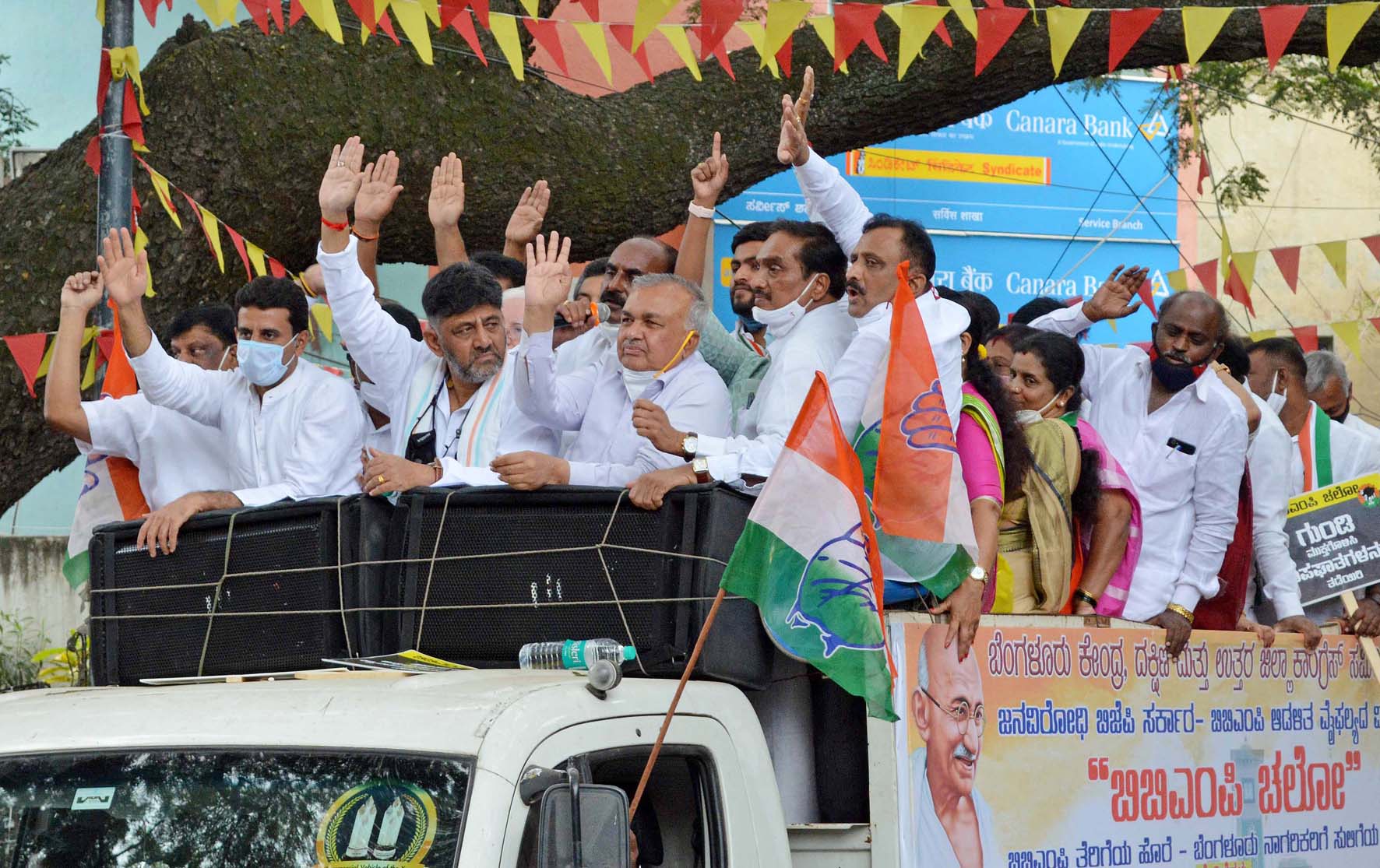 ಹೆಚ್ಚುವರಿ ತೆರಿಗೆ ಖಂಡಿಸಿ ಬಿಬಿಎಂಪಿ ಕೇಂದ್ರ ಕಚೇರಿಗೆ ಮುತ್ತಿಗೆ ಹಾಕಿದ ಕಾಂಗ್ರೆಸ್