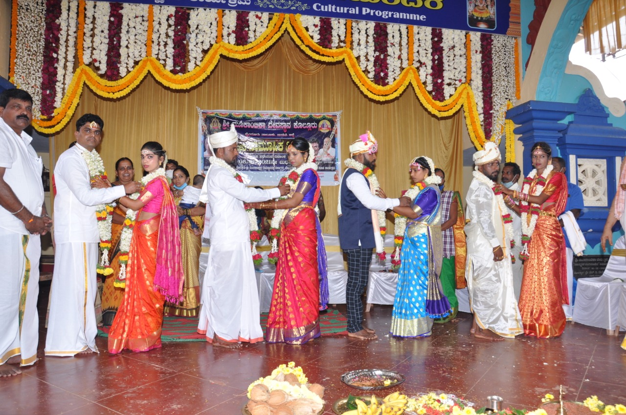 ಗಜಾನನ ಜೋಯಿಷರ ನೇತೃತ್ವದಲ್ಲಿ ಹಿಂದೂ ಸಂಪ್ರದಾಯದಂತೆ ನಾಲ್ವರು ಜೋಡಿ ಹಸೆಮಣೆ ಏರಿದರು. ಆರ್ಟ್ ಆಫ್ ಲಿವಿಂಗ್ನ ಶ್ರೀರವಿಶಂಕರ್ ಗುರೂಜಿ ನವಜೋಡಿಗೆ ಆಶೀರ್ವದಿಸಿದರು. ದೇವಳದ ವತಿಯಿಂದ ದಂಪತಿಗಳನ್ನು ಗೌರವಿಸಲಾಯಿತು.
